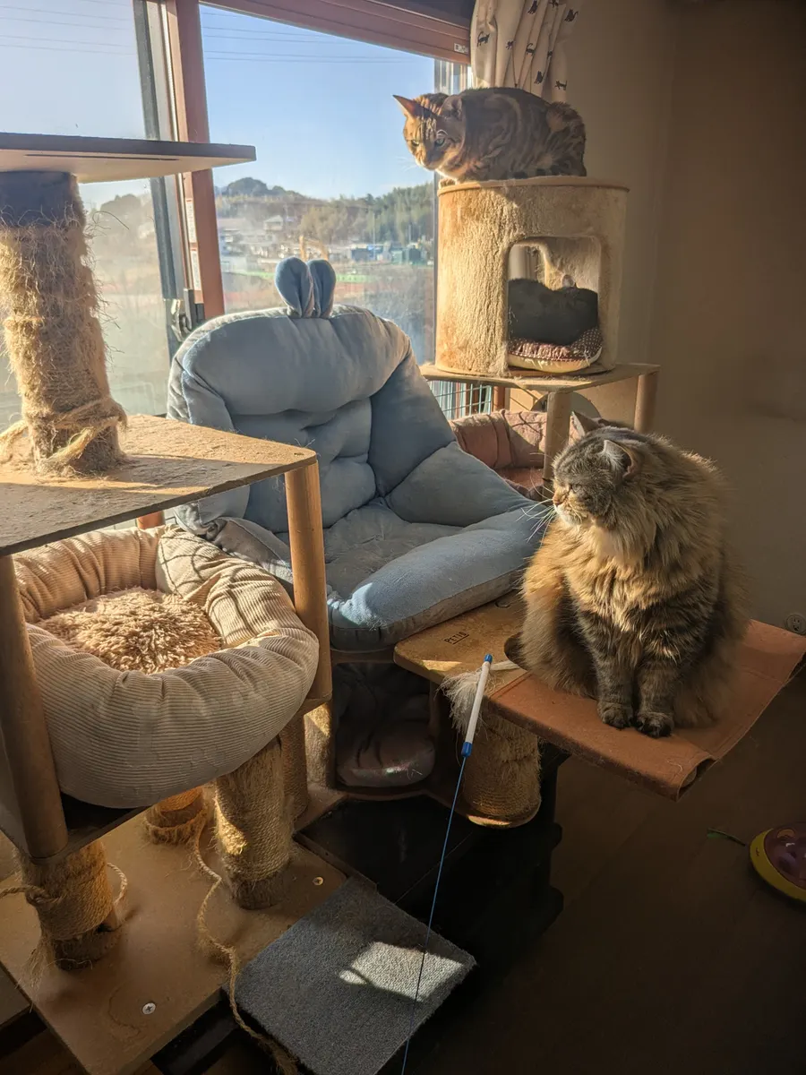 昼間は日の当たる窓際へ移動して、日の光を存分に浴びながら寝たり、外を眺めたりと、満足そうです!