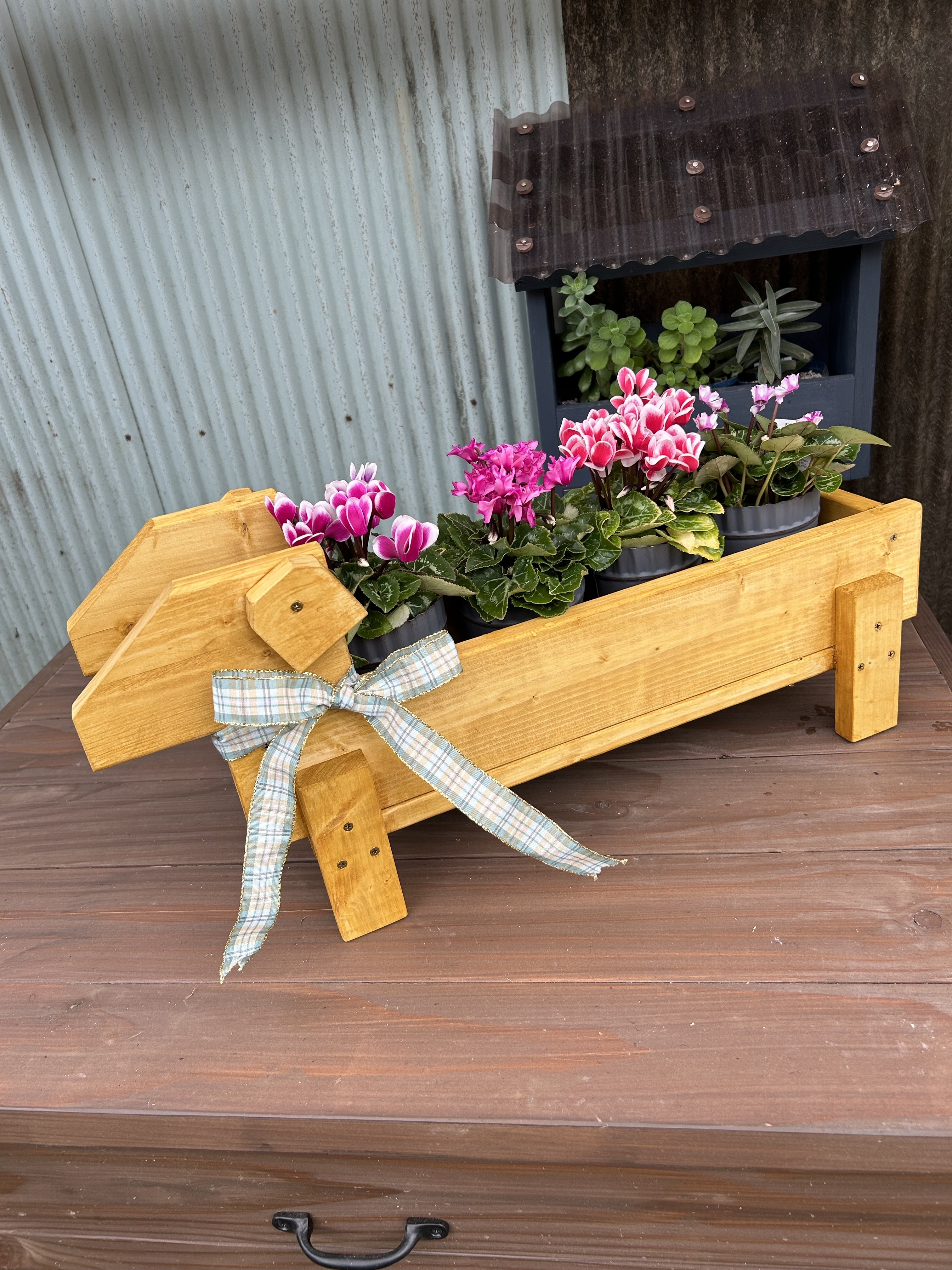 ドッグプランターにシクラメンが入って華やかになりましたね。