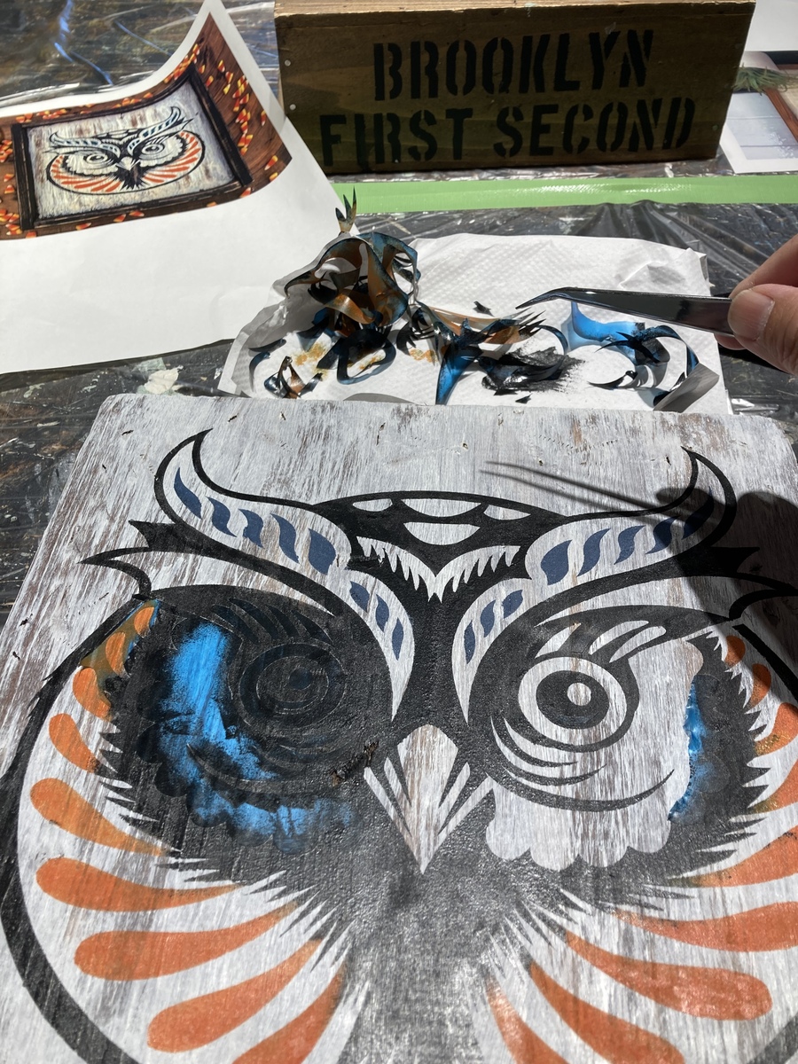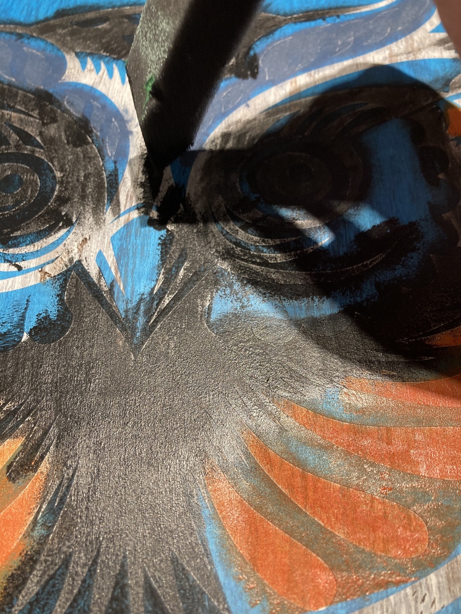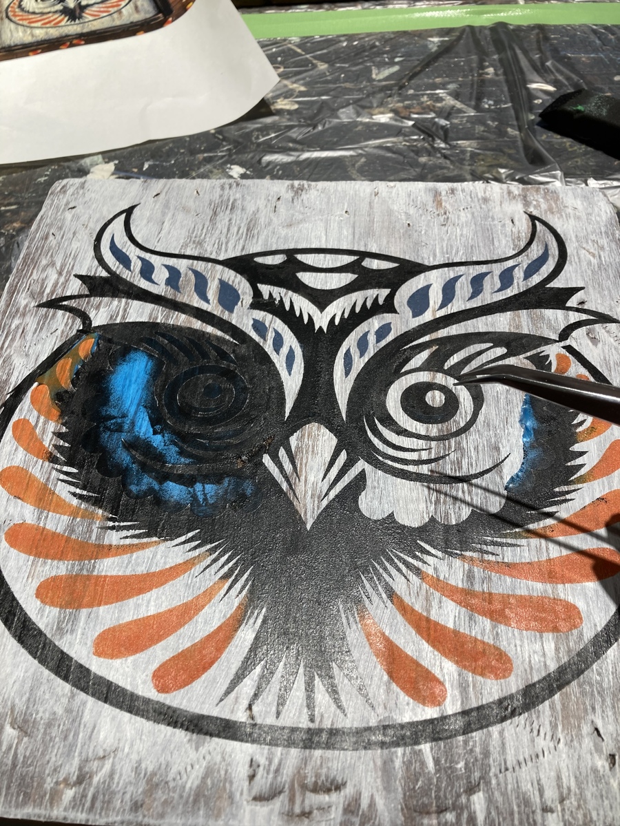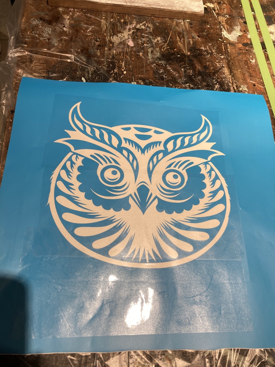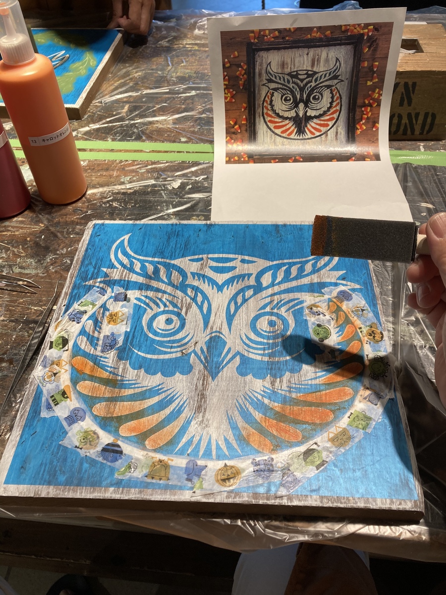 こんなに真剣に、フクロウの絵⁉︎ステンシルを通して、描きあげたの初めてで。。。(笑)