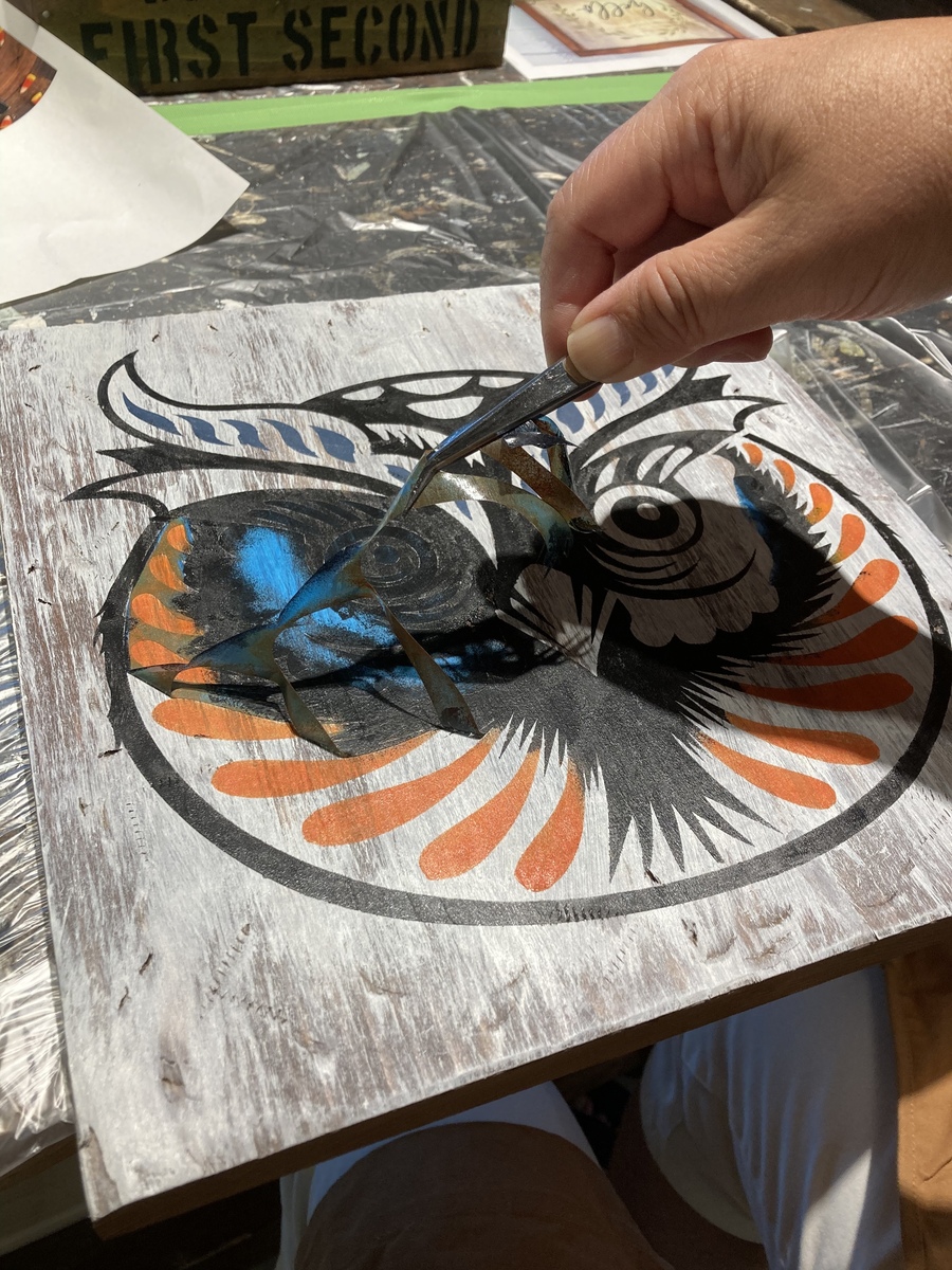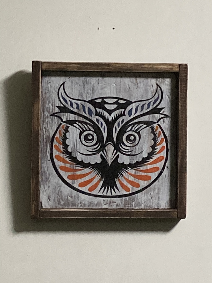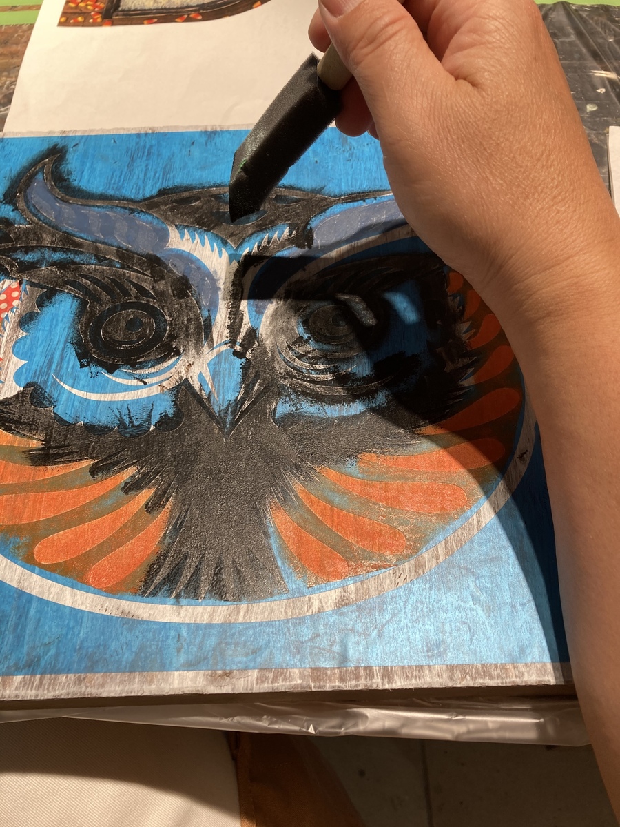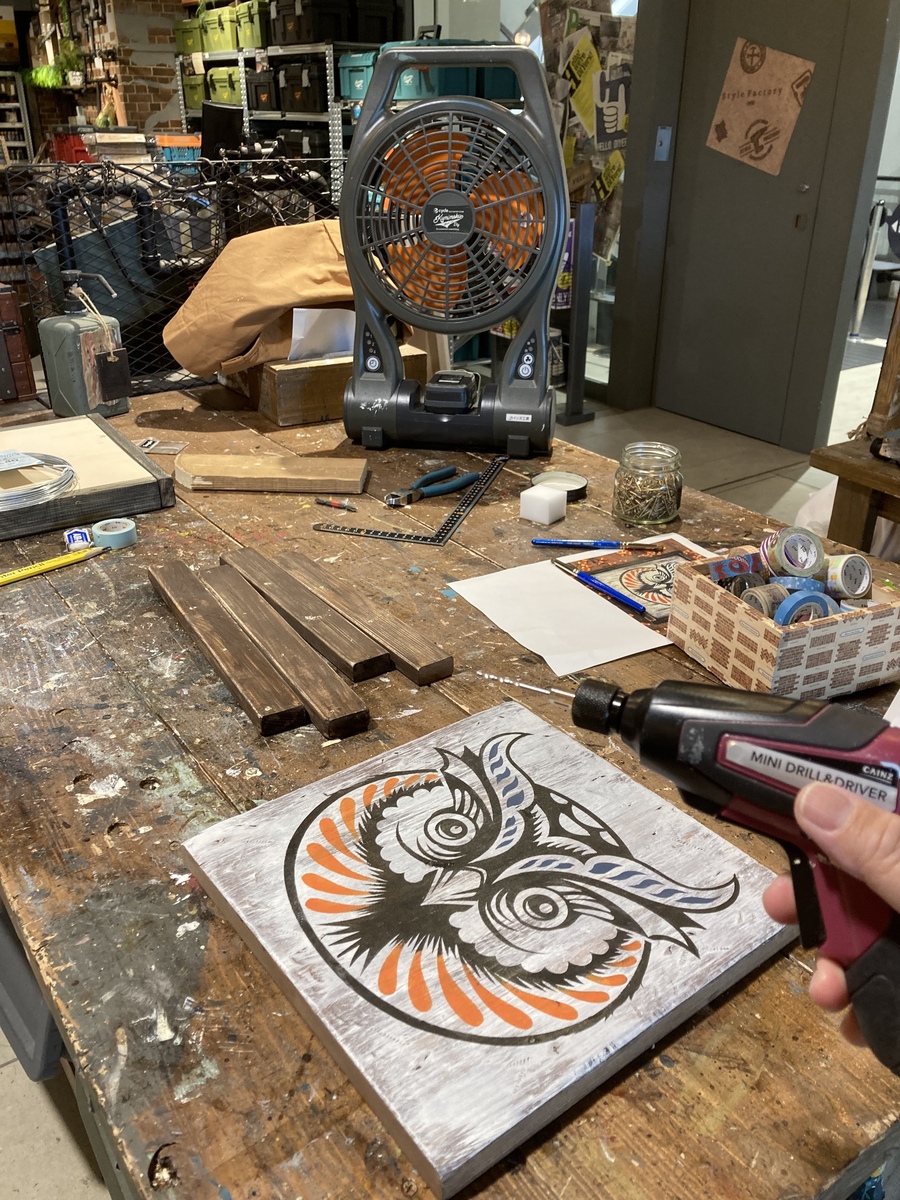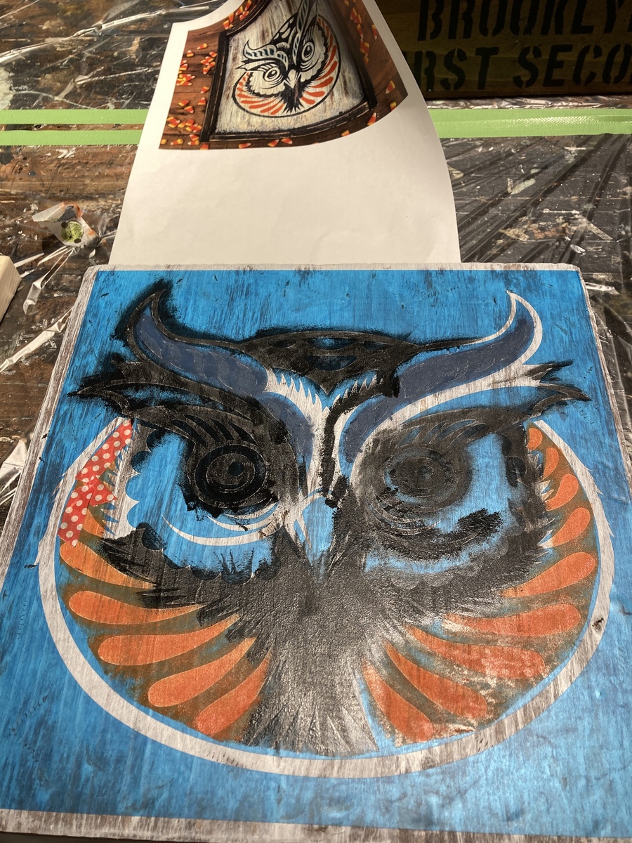 こんなに真剣に、フクロウの絵⁉︎ステンシルを通して、描きあげたの初めてで。。。(笑)