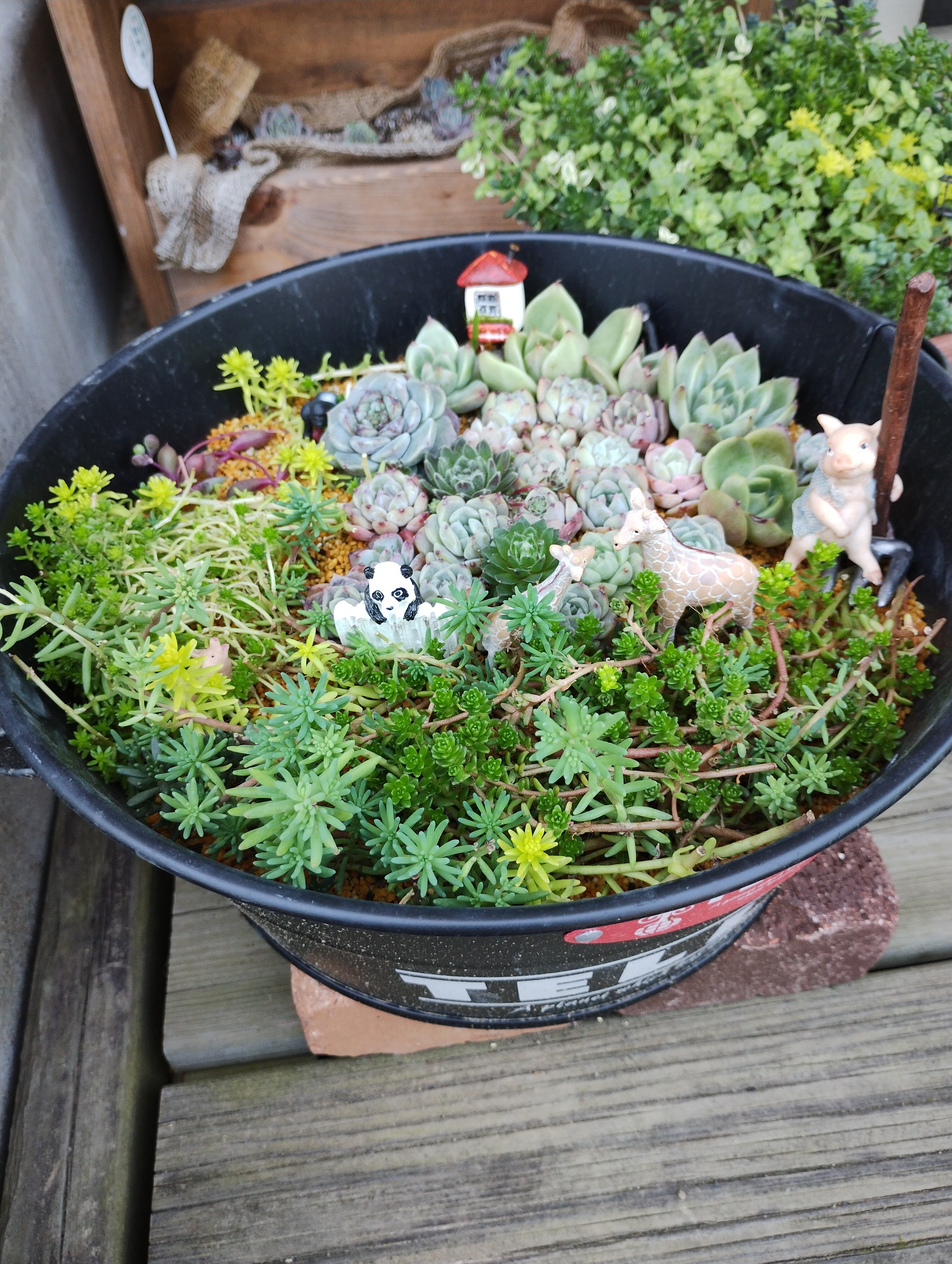 投稿を表示ちょっとだけ増えた多肉さんをどうしようかと、迷っていますが、動物さんも可愛くて、がーぁさんの様な寄せ植えは、楽しくて良いですね🎶
