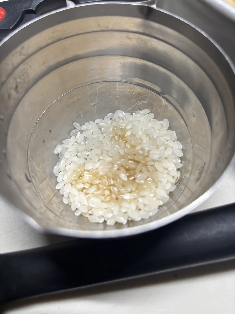 米にごま油をからませる。⬇️