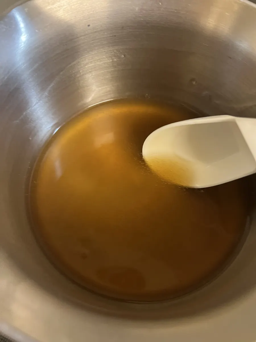 - 別鍋でめんつゆ・水を温め、水溶き片栗粉でとろみをつける。