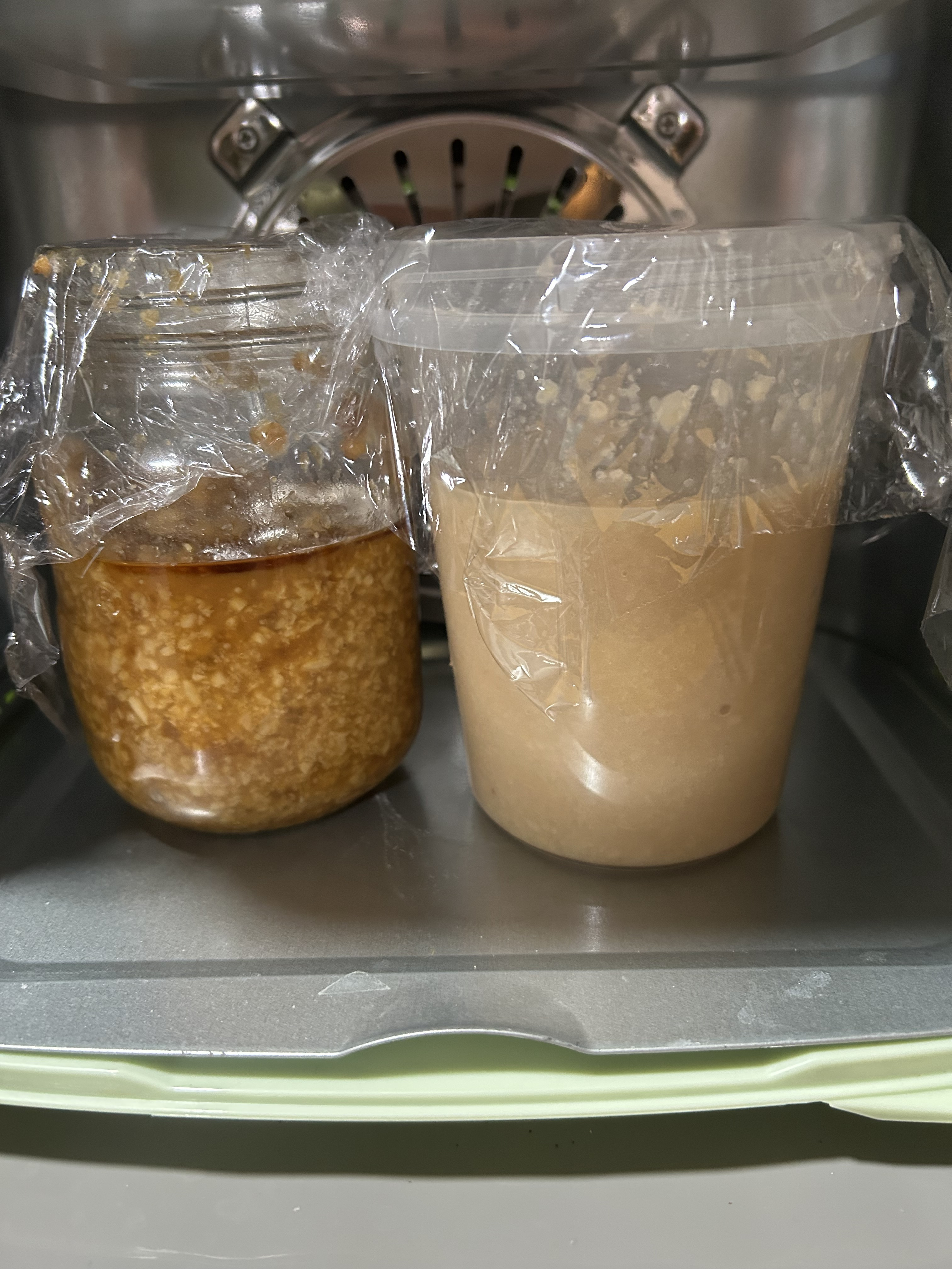 トップ > クッキング > 料理 > 塩麹と玉ねぎ醤油麹 はるかのん 2025/11/06 19:13 塩麹と玉ねぎ醤油麹 ドライフードメーカーを使い乾燥米麹で 塩麹と玉ねぎ醤油麹を作りました 混ぜて安い深夜料金の時間帯にドライフードメーカーに6時間ほど入れ 朝には出来上がりです✌️ 右、塩麹 左、玉ねぎ醤油麹 にんにく麹、生姜麹、これで4種できました✌️ はるかのんクッキング 麹調味料 塩麹 玉ねぎ醤油麹 いいね 共有する 共有する X LINE リンクをコピー コメントする 2 件の返信 (新着順) ミュートしたユーザーの投稿です。 投稿を表示 ka-ko 2025/11/07 13:14 私も最近麹生活しています。玉ねぎ麹ドレッシングにして使っています👍 醤油麹、塩麹、甘酒大活躍です✨ いいね 返信する ミュートしたユーザーの投稿です。 投稿を表示 はるかのん 2025/11/08 22:28 ka-ko ありがとうございます😊 麹調味料使うと一味イヤ 二味程アップグレードしますよね この塩麹を使って 自家製ベーコン作りました 後ほど投稿します みて下さいね😍 いいね 返信する ミュートしたユーザーの投稿です。 投稿を表示 さくら♡ 2025/11/06 21:53 色々と活用出来そうですね❣️🥰 いいね 返信する ミュートしたユーザーの投稿です。 投稿を表示 はるかのん 2025/11/08 22:25 さくら♡ ありがとうございます😊 この塩麹を使って自家製ベーコン作りました 後ほど投稿します みて下さいね🥰 いいね 返信する