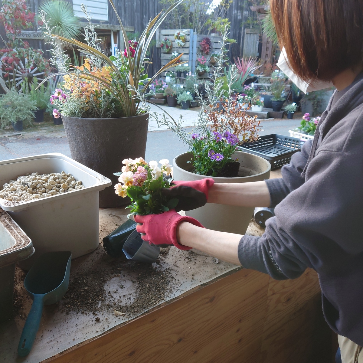 鉢持ち込みOk 土無料で 店内選んだ花苗を寄せ植えしてくれるというお得な企画がありました