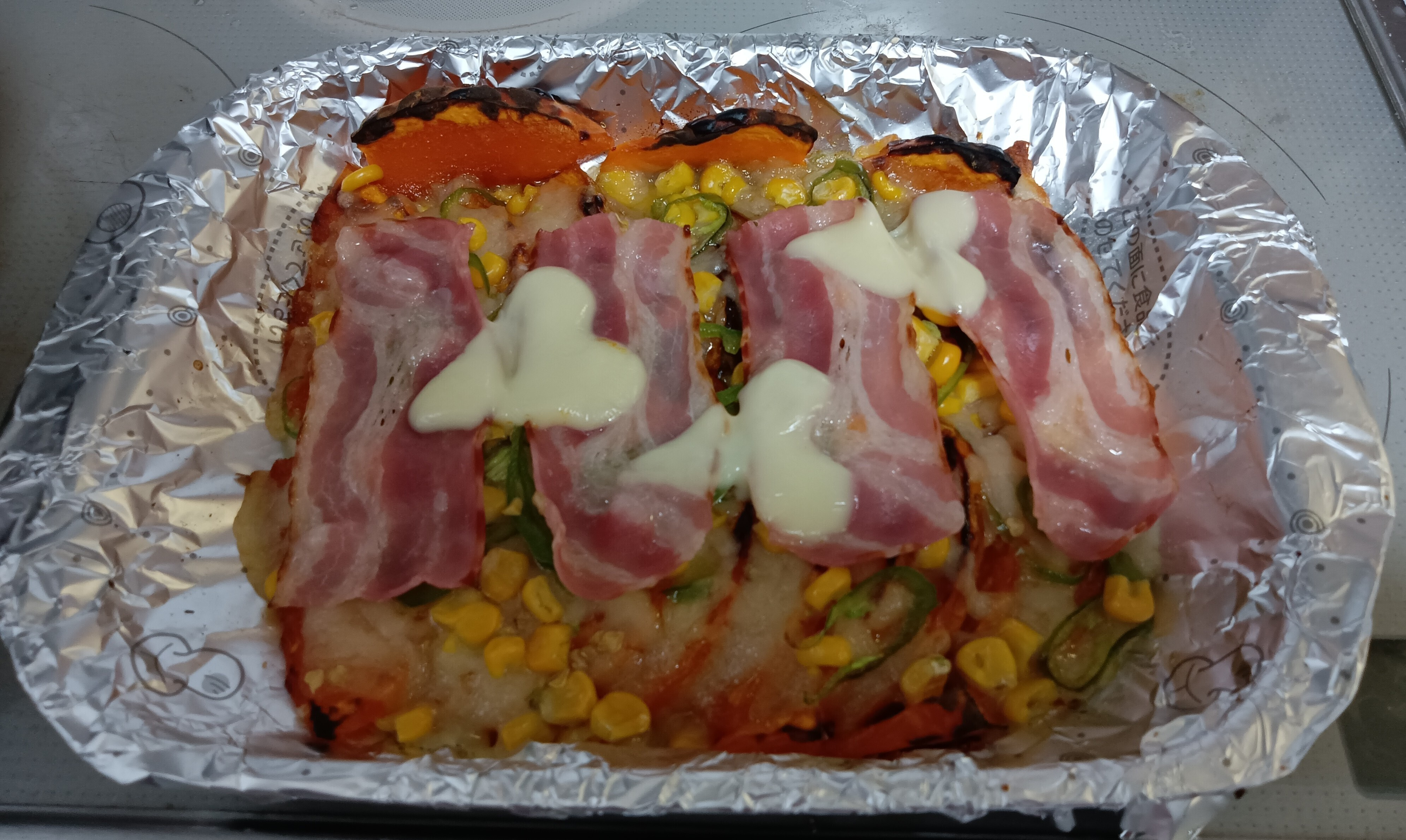 コーンとピーマン🫑も入れてピザ風ですね🍕