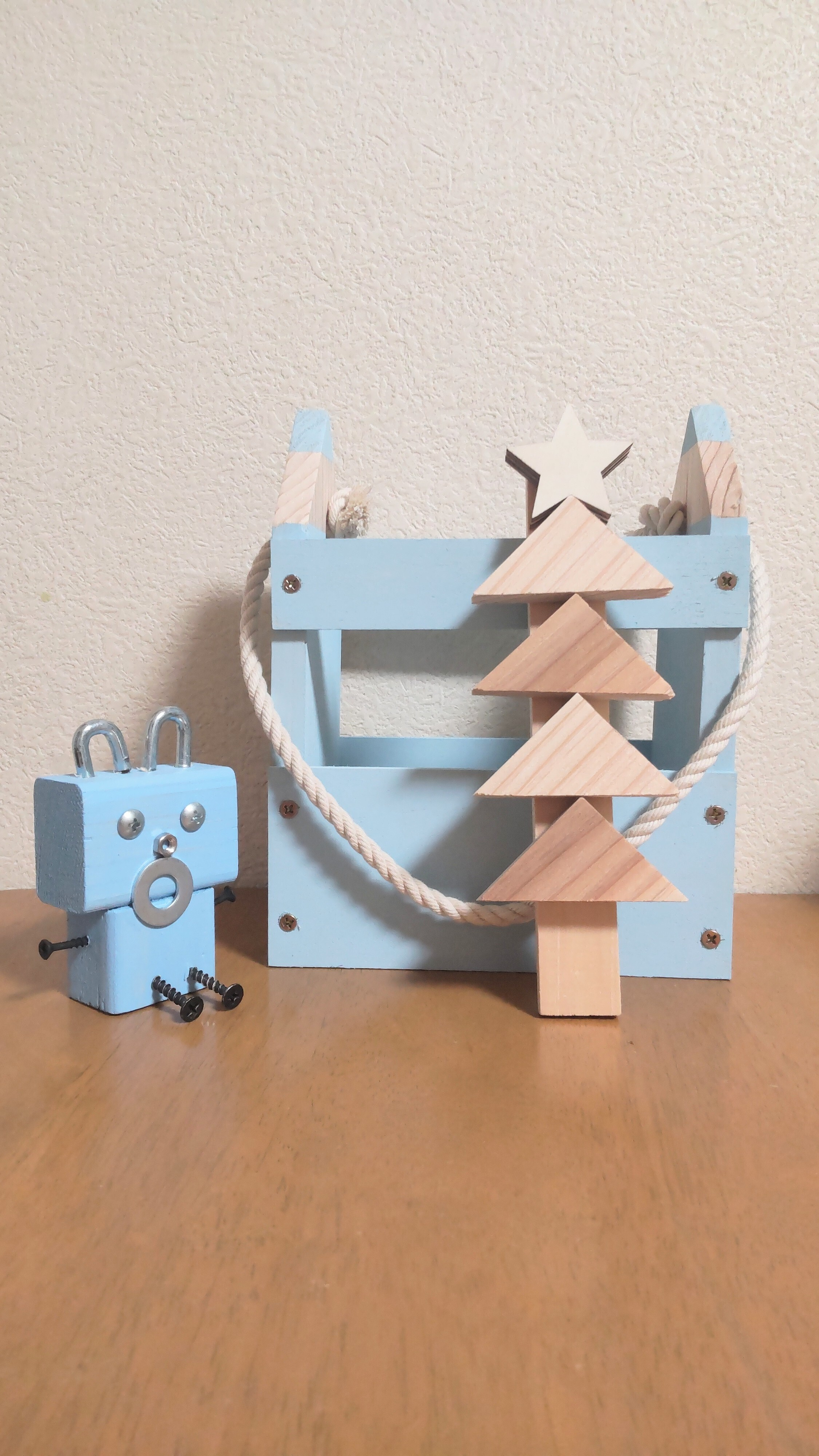 投稿を表示ブルーのアイテムに白木のツリー🌲、大人っぽいです