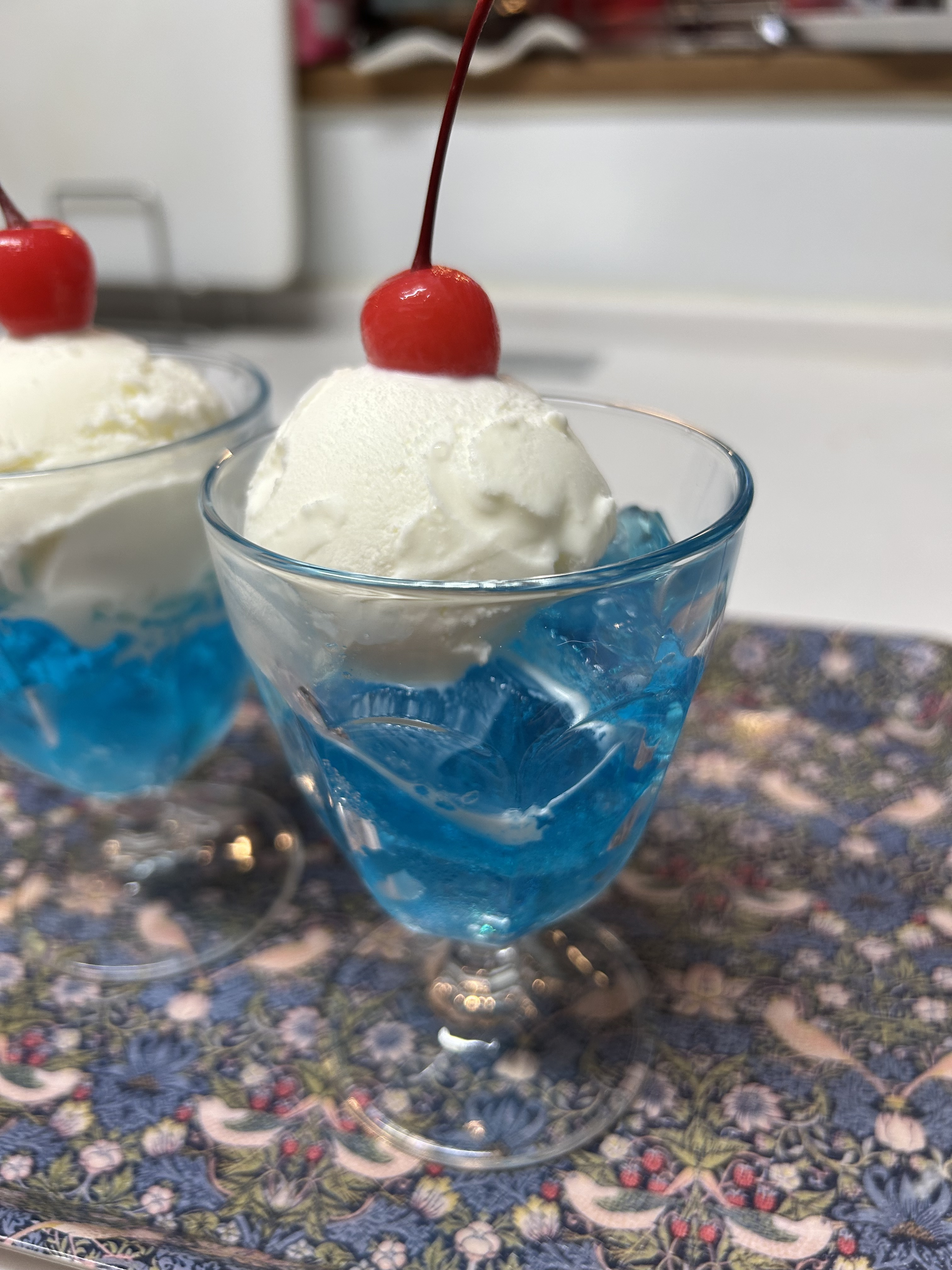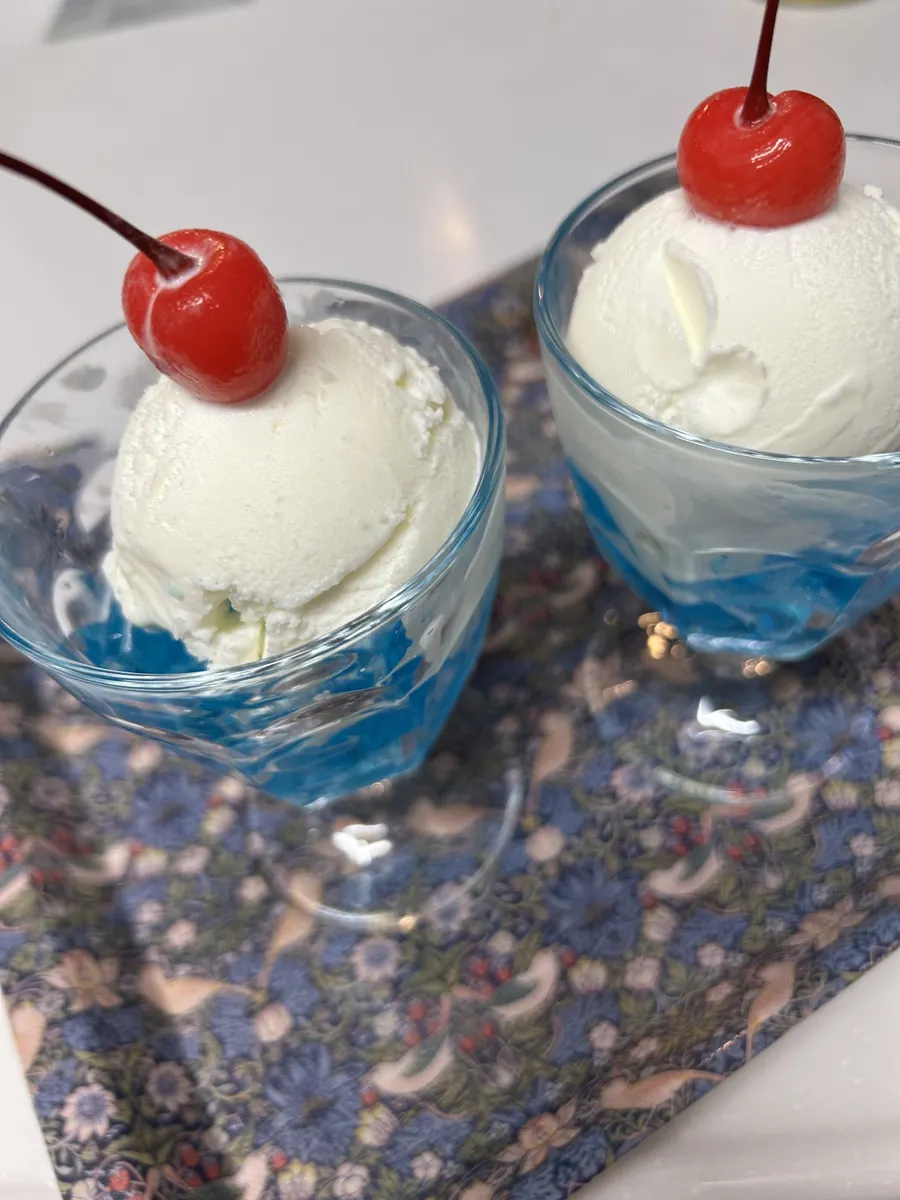 本日のゼリーは一昨日作ったものが良いと孫娘のリクエストでクリームソーダ風ゼリーです🍧