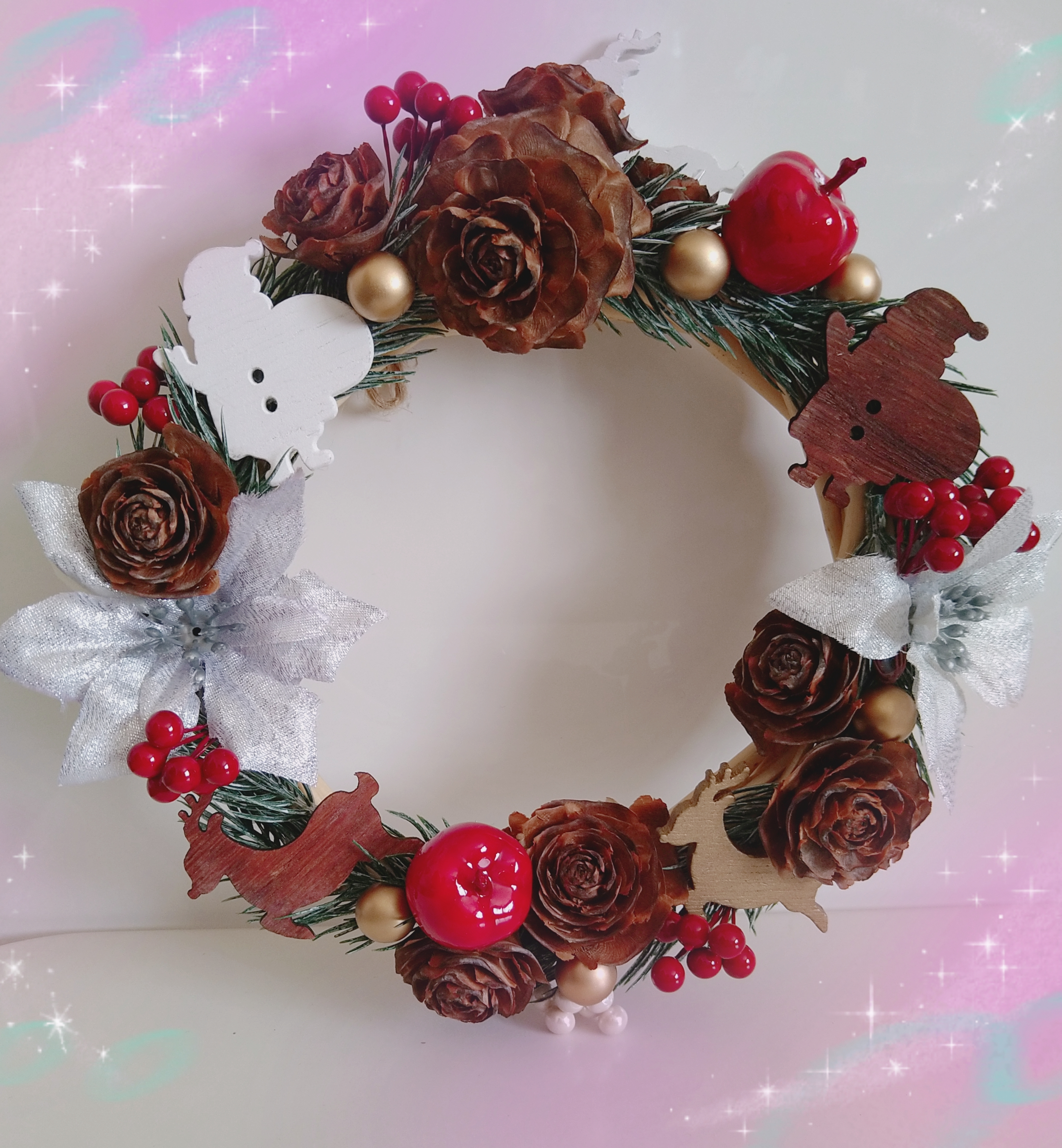 シダーローズを使うとリースも華やかになり、可愛くて素敵なリースになってますね🤗🎶🎄💕