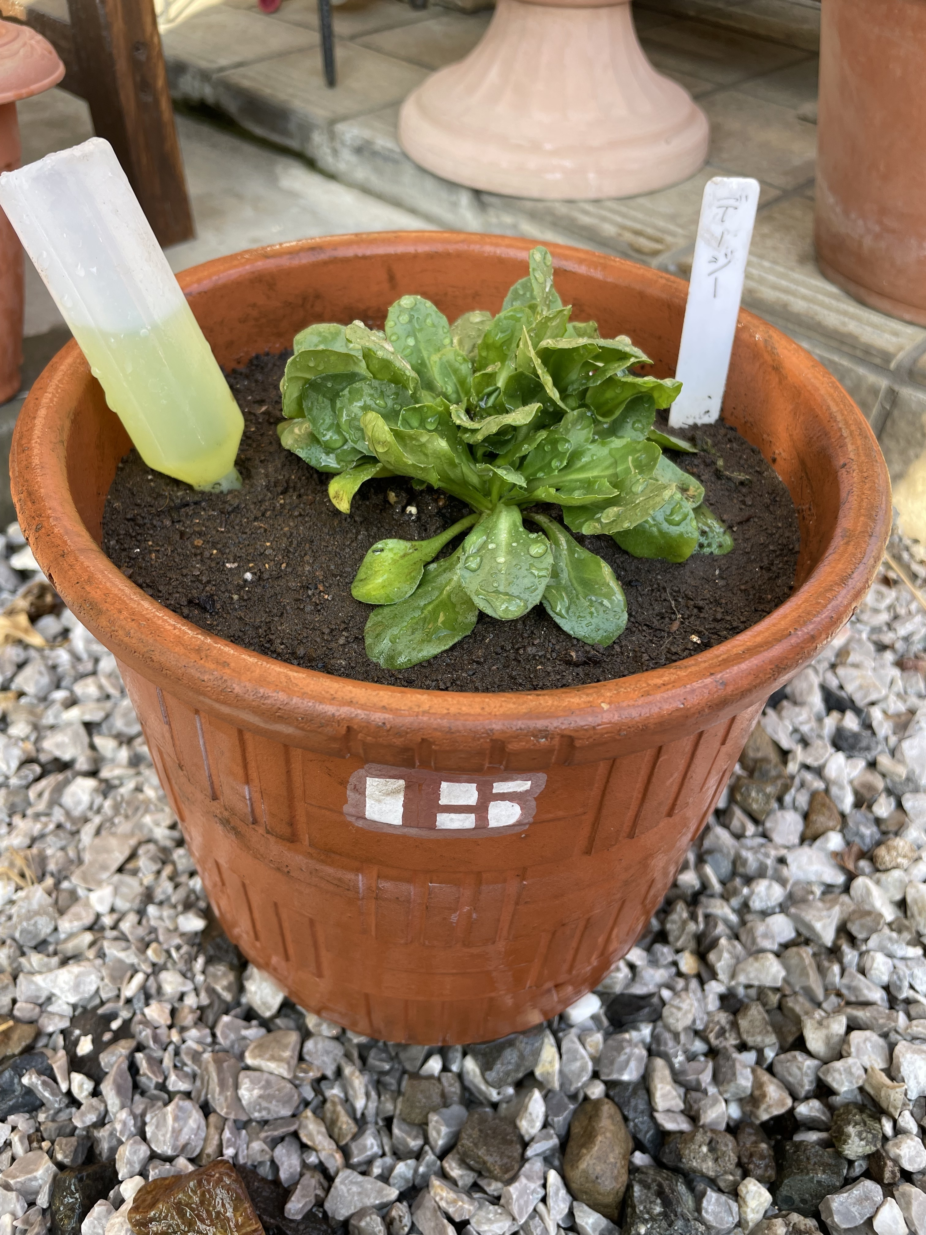左のが、鉢の大きさが小さく感じるので、ふたまわり程大きな鉢にアイキャッチ画像のように植え替えました。