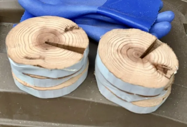 で、100均の薄い板を丸く切って作るとか言うから"それはかえって手間、家にある丸太切った方が早いよ"って言ったんだけど、8日は雪で結局作れなくて❄️❄️。