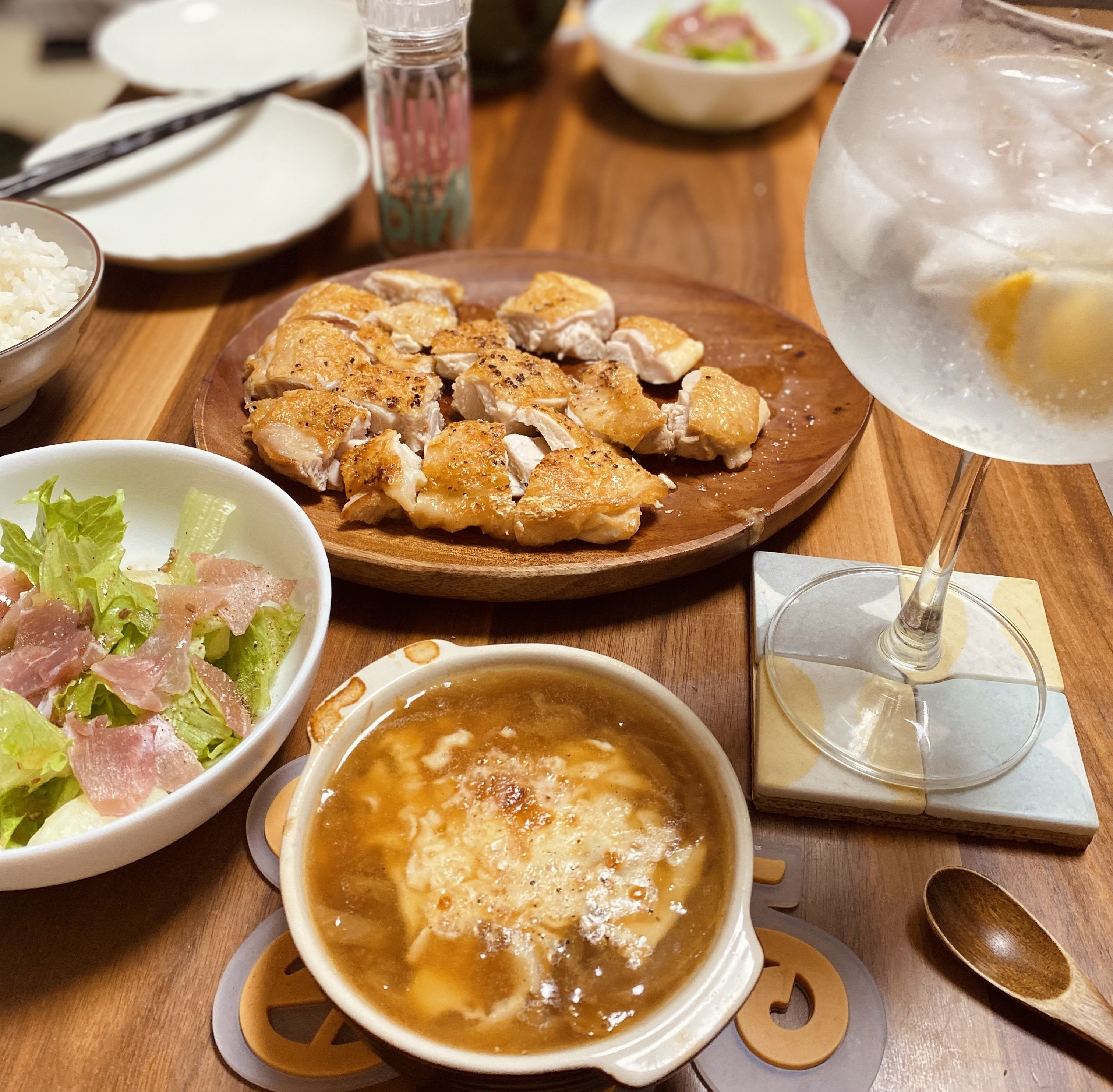 わぁ〜、旦那氏の鶏もものパリパリ焼きじっくり焼きしてるのが解るぅ〜😆👍🐓✨
