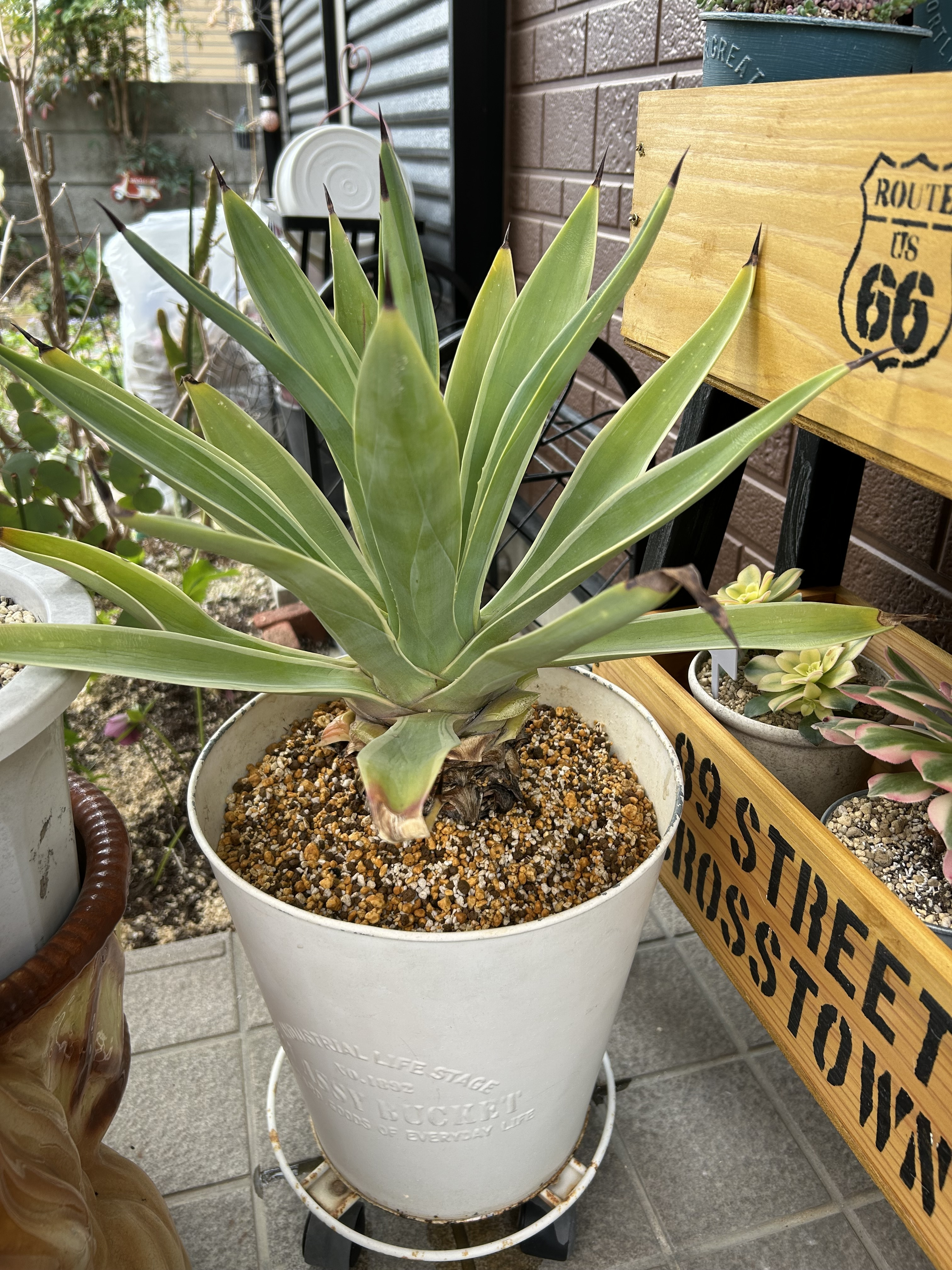 トップ > グリーン > 多肉植物・サボテン > アガベ まろん 2026/03/02 14:13 アガベ 植え替えしてあげました😄 めっちゃ疲れました 抜けない😩 子株までいっぱいあってせなせなと 思いながらしなくて これも根を半分切って植えてあげました 同じ器に🎶 いいね 共有する 共有する X LINE リンクをコピー コメントする 3 件の返信 (新着順) ミュートしたユーザーの投稿です。 投稿を表示 ココロ 2026/03/04 19:49 この子株ちゃんをいただいたんですね♡ありがとうございます😊 いいね 返信する ミュートしたユーザーの投稿です。 投稿を表示 まろん 2026/03/05 06:58 ココロ このアガベすぐ子株出るのよ 5個付いてた 1番大きいのんやから根もしっかりあるし今から大きくなるわ😊 いいね 返信する ミュートしたユーザーの投稿です。 投稿を表示 さくら♡ 2026/03/03 07:26 トゲが怖くてなかなか植え替え出来ないんです💦😅 どうやってされましたか? いいね 返信する ミュートしたユーザーの投稿です。 投稿を表示 まろん 2026/03/03 08:45 さくら♡ ありがとうございます😊 刺さりましたよ 痛い〜 ちょっと油断したら刺さります 手袋中にも履いて細めのシャベルで 根を切りながら引っ張り出しました🤭 アガベは凄いわ〜すぐ根が張って いつも半分ぐらい切って植えてるのに 疲れました🤭 いいね 返信する ミュートしたユーザーの投稿です。 投稿を表示 さくら♡ 2026/03/03 08:46 まろん 根っこ、ヤバいですよね😂 いいね 返信する ミュートしたユーザーの投稿です。 投稿を表示 ぱんだ 2026/03/02 17:01 カッコイイなー❣️ いいね 返信する ミュートしたユーザーの投稿です。 投稿を表示 まろん 2026/03/02 18:32 ぱんだ ありがとうございます😊 子株だらけで抜けないし疲れました🤭 長年いるので大事にします🩷🎶 いいね 返信する