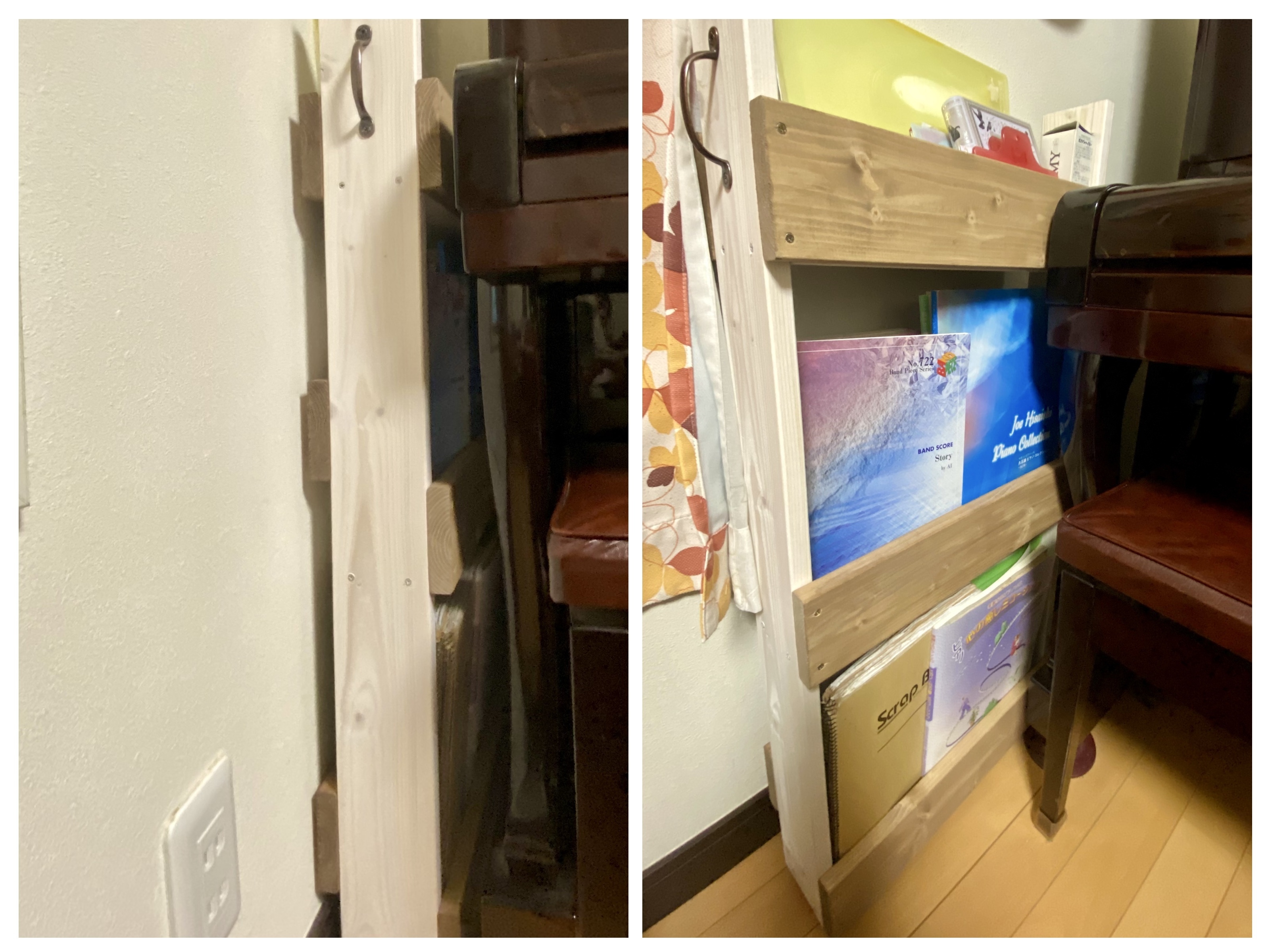 投稿を表示横板をずらすことによって楽譜立てにピッタリ❣️ピアノの横にスッキリ収まって素晴らしいです👍👏
