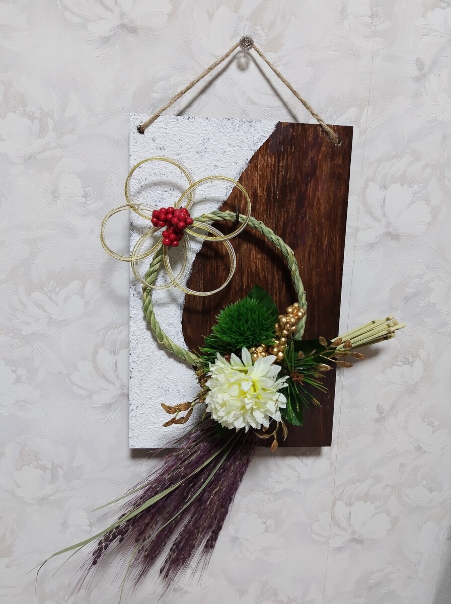 投稿を表示くぅさん、自作のお正月飾りボード曲線でツートンにされて素敵ですね❣️