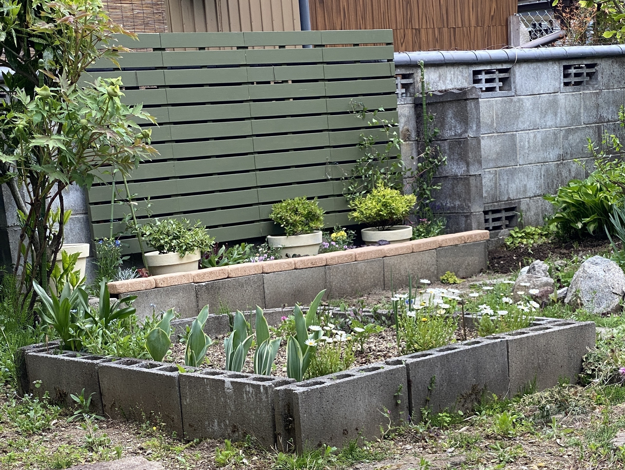 トップ > その他 > ボーダー花壇にフェンス取り付けました Toko 2023/04/29 16:48 ボーダー花壇にフェンス取り付けました 先日色塗りした、スノコ利用のフェンス、やっと取り付け完了。 花壇は奥行きが30センチくらいの狭〜い花壇ですが、宿根草と低樹木🪴だけに絞って植え付けました。壁も利用して味気ないブロック塀が少しは綺麗になるかな〜と期待してます。 アベリアがもう少し伸びてくれたら… 今後に期待❗️😆 いいね 共有する 共有する X LINE リンクをコピー コメントする 5 件の返信 (新着順) ミュートしたユーザーの投稿です。 投稿を表示 ゆー 2023/04/30 07:35 落ち着いたグリーン 良い色ですね✨ 大物でスノコとは思えないです☺️ いいね 返信する ミュートしたユーザーの投稿です。 投稿を表示 Toko 2023/04/30 08:55 お布団の下に敷くスノコです。 使わないで残っていたので、何かに使えないかと考えていました。 寿命がどれくらい持つのか⁈が問題ではありますが。取り敢えずrecycle。 自分的には満足! いいね 返信する ミュートしたユーザーの投稿です。 投稿を表示 さくら餅 2023/04/30 06:52 フェンスがあると雰囲気がガラッと変わって良いですよねー! 色も素敵💓 いいね 返信する ミュートしたユーザーの投稿です。 投稿を表示 Toko 2023/04/30 08:53 ブロック塀とかコンクリート塀とか、ちょっと味気ないですものね… ペンキで誤魔化すのもな… 本来は本物のグリーン(樹木や花)で感じなくさせたいものですね。 いいね 返信する ミュートしたユーザーの投稿です。 投稿を表示 はるかのん 2023/04/29 23:33 落ち着いた色合いのグリーン 素敵ですね😍 いいね 返信する ミュートしたユーザーの投稿です。 投稿を表示 Toko 2023/04/30 08:51 この色、渋めでおすすめです。 ミルクペイントの外用シリーズ、カントリーオリーブです。 何がカントリーー?田舎ということがな😅…我が家にはピッタリかも。 いいね 返信する ミュートしたユーザーの投稿です。 投稿を表示 はるかのん 2023/04/30 09:15 Toko 返信ありがとうございます😊 カントリーオリーブ ですね 使ってみようかしら〜🎶 いいね 返信する ミュートしたユーザーの投稿です。 投稿を表示 べるん 2023/04/29 22:00 グリーンのフェンスが、花壇に馴染んで素敵ですね💐 いいね 返信する ミュートしたユーザーの投稿です。 投稿を表示 Toko 2023/04/30 08:50 緑の植物が少ない時でも、緑を感じられるように!と思いまして。 ちょっと渋めのグリーンですね。 いいね 返信する ミュートしたユーザーの投稿です。 投稿を表示 あにー 2023/04/29 18:12 大作設置お疲れ様でした! 重くなかったですか? いいね 返信する ミュートしたユーザーの投稿です。 投稿を表示 Toko 2023/04/30 08:48 元がスノコなので、素材は桐なんです…重さはさほどではありませんが、どれくらい持つのか?こちらの方が心配。 なので、上に笠木という板を乗せようと思います。 いいね 返信する