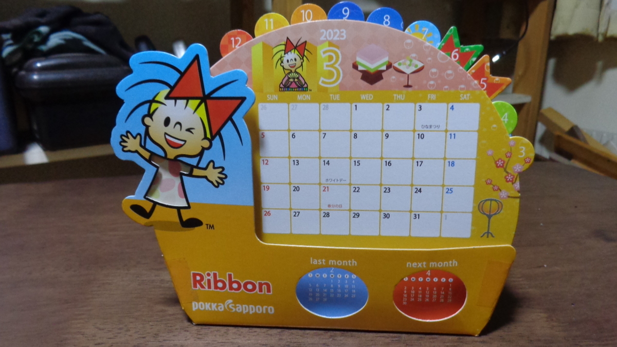 こんばんは、totoroです。今日は昔懐かしのリボンシトロンとかリボンナポリンのキャラクターでしたリボンちゃん組み立て式カレンダーを頂いたので、組み立ててみたら面白かったのでご紹介します。