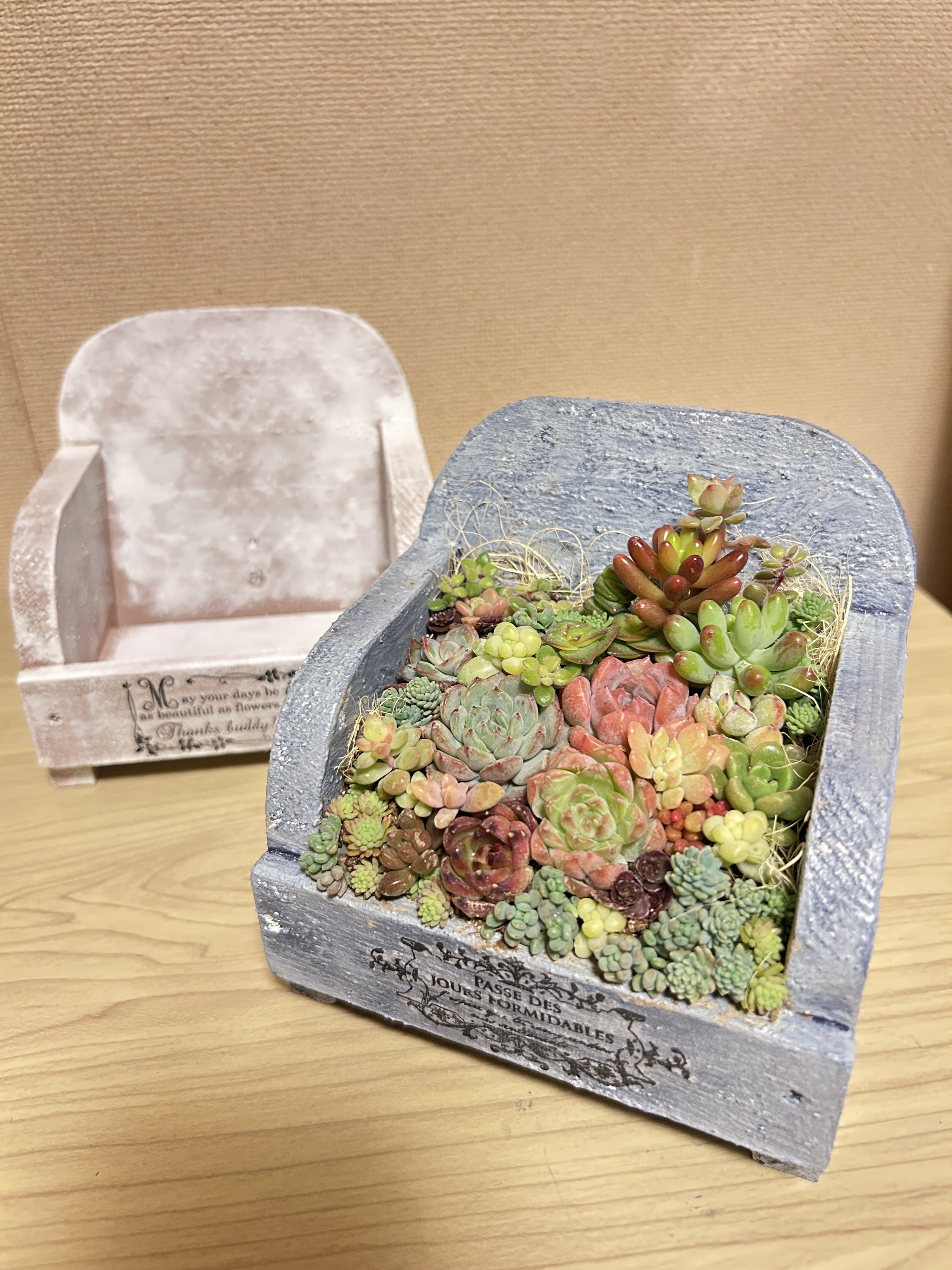 奈良で多肉植物の寄せ植えワークショップを2ヶ月に一度位のペースで開催しているのですが、次回1月のワークショップでこのdiyソファ型鉢を使ってもらう予定です😊