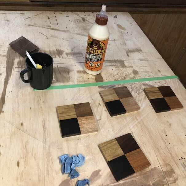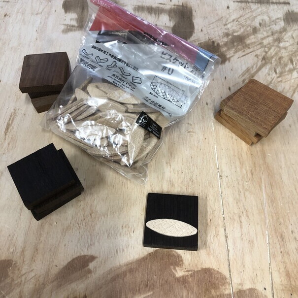 側面に凹状のくぼみを入れて、ビスケット接合するつもりがコースターの大きさでは無理か……。