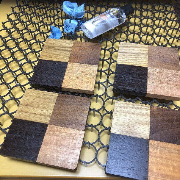 4種類の木がとても美しく、すてきな木のコースターですね✨(人´ω`)
