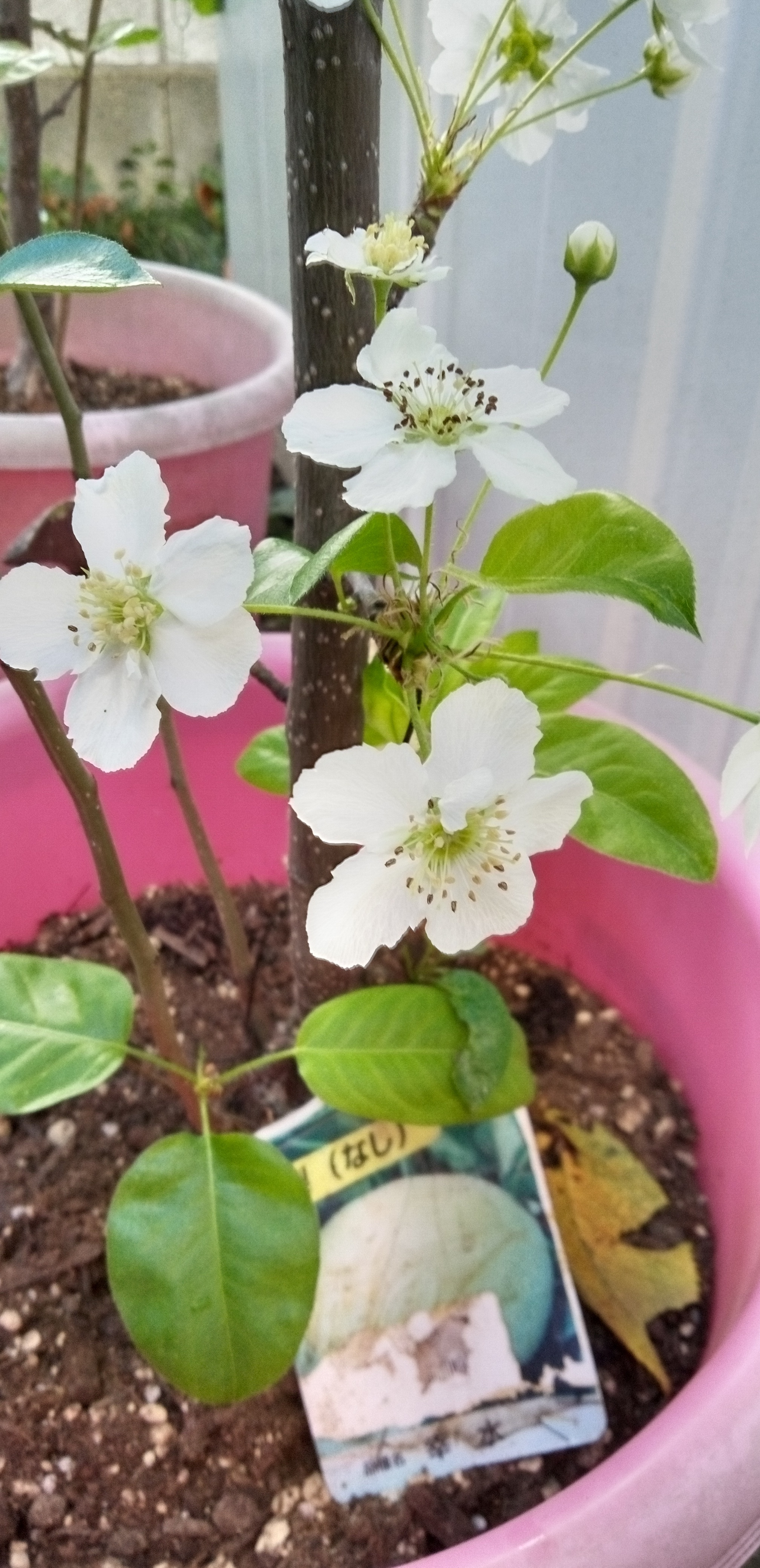 投稿を表示梨の花は白いんだなぁって梨園のブルーの細かいネット超しにしか見たことがありませんでしたが とても可愛らしいお花なんですね〜😊