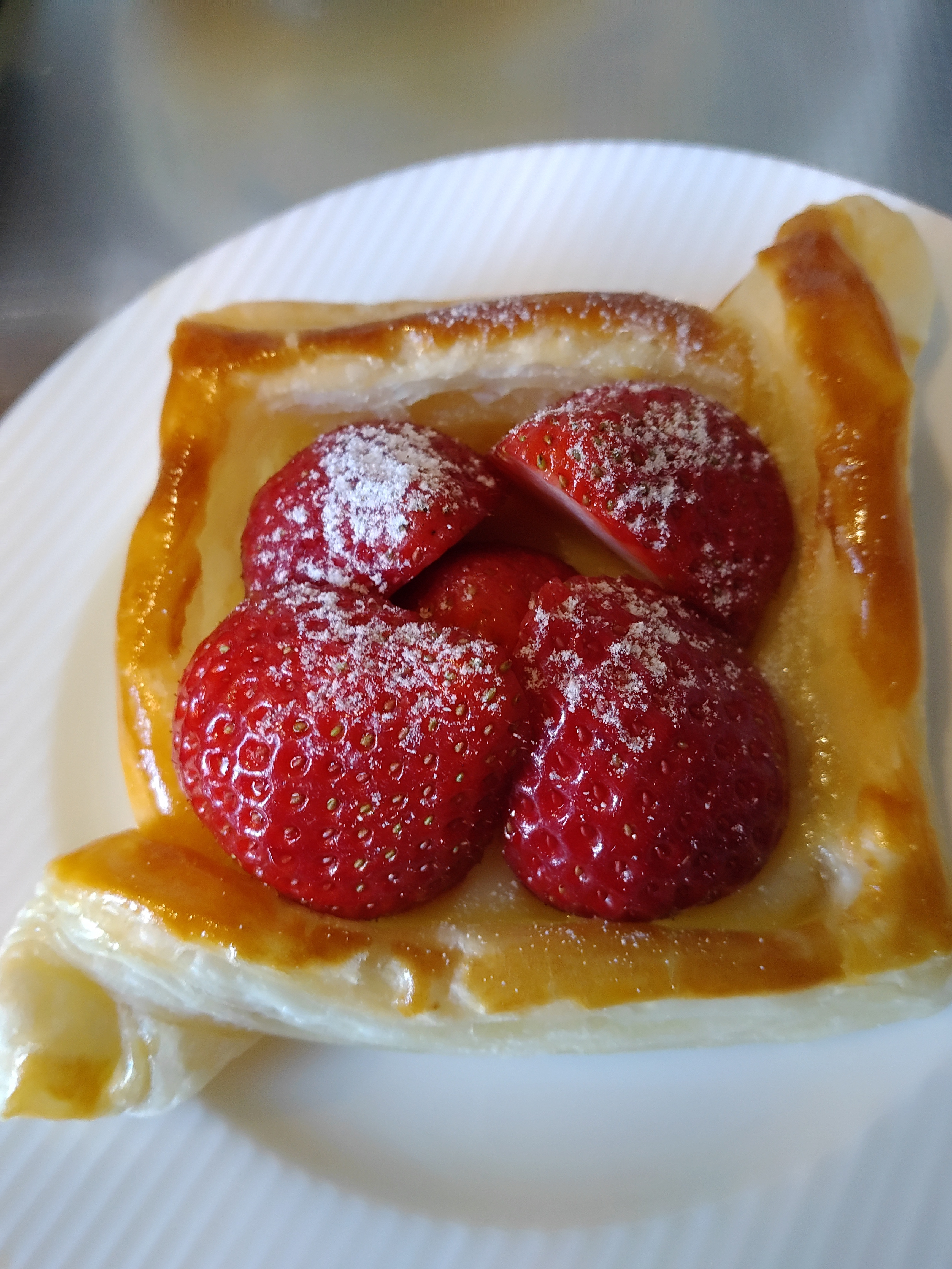 投稿を表示サクサクのパイ生地も、綺麗な🍓のトッピングも美味しそうですね~🤤
