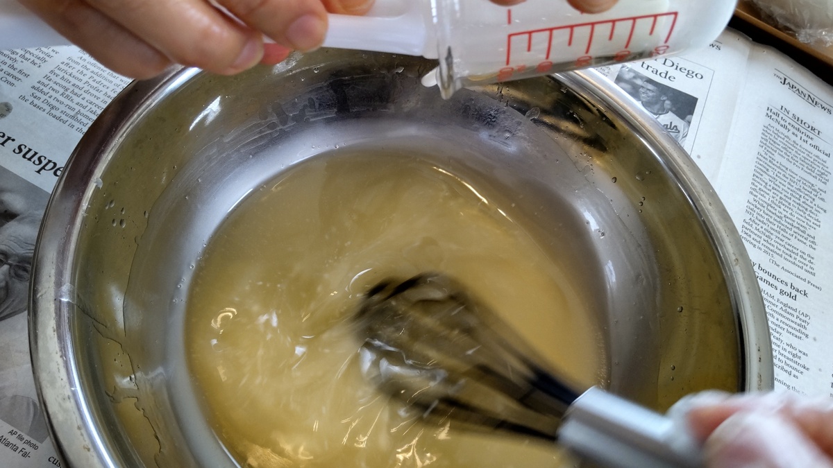 先生からオッケーが出たので、色付けのために、石鹸生地を取り分けます( ・∀・)♫