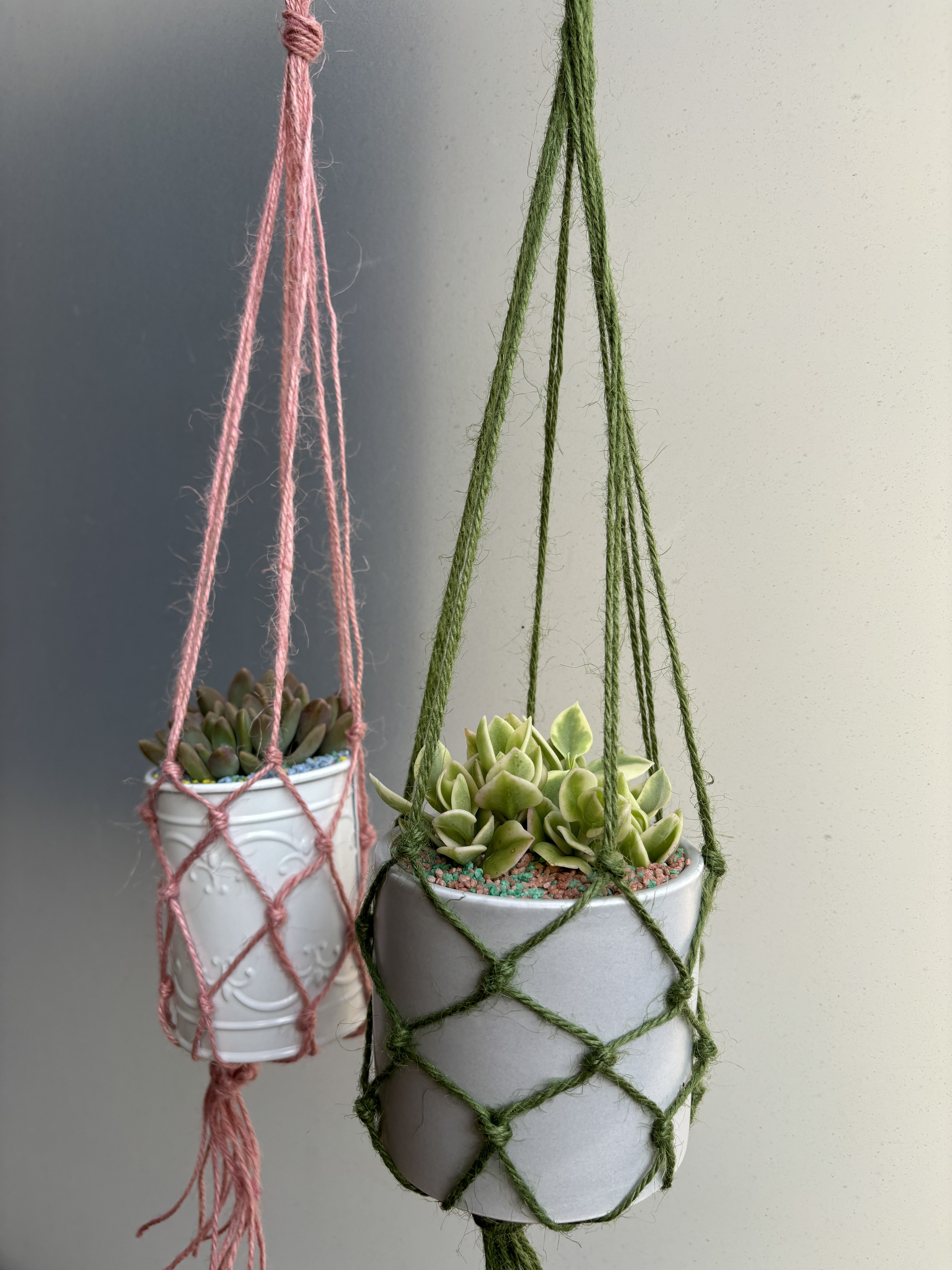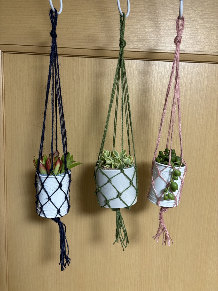 トップ > グリーン > 吊り下げてみました 花*花 2024/05/20 23:40 吊り下げてみました 最近この吊り下げタイプをよく作っています とても簡単なので 麻糸があればすぐにできます 以前ワークショップでワイヤーで 鉢カバーを作りましたが それの応用編です😊 麻糸、150cm✖️6本でできます 3つも作りました🤣 知らぬ間に増えたグリーンネックレスの粒が あまりにも大きくて🤣 このかわいい小さな鉢とピンク色の吊り下げ紐にミスマッチで 笑いが止まらなくなりました🤣🤣🤣 写真撮った後で 大きな粒は避けて 可愛いサイズのグリネに変えました😊 いいね 共有する 共有する X LINE リンクをコピー コメントする 2 件の返信 (新着順) ミュートしたユーザーの投稿です。 投稿を表示 みんと 2024/05/21 10:37 色付きの紐を使うと、ワイヤーとはまた違った可愛さがありますね✨ WSて学んだことをちゃんと活かしていてすごいです😆 いいね 返信する ミュートしたユーザーの投稿です。 投稿を表示 花*花 2024/05/22 10:18 みんと みんとさん ワイヤーより簡単で、手間もかからず しっかり吊るす事もできるし、 みんとさんの多肉にもおすすめです😊 今度持っていきます🤭 いいね 返信する ミュートしたユーザーの投稿です。 投稿を表示 みずたま☆ 2024/05/21 01:10 ハンギング作り楽しそう🎵 カラフルな麻紐も可愛いですね❤️ いいね 返信する ミュートしたユーザーの投稿です。 投稿を表示 花*花 2024/05/22 10:20 みずたま☆ みずたま⭐︎さん ありがとうございます これもハンギングと呼んでいいのかしら これはなんていうの?って自分で悩んでました😅吊りネット?しか思い浮かびませんでした🤣 いいね 返信する