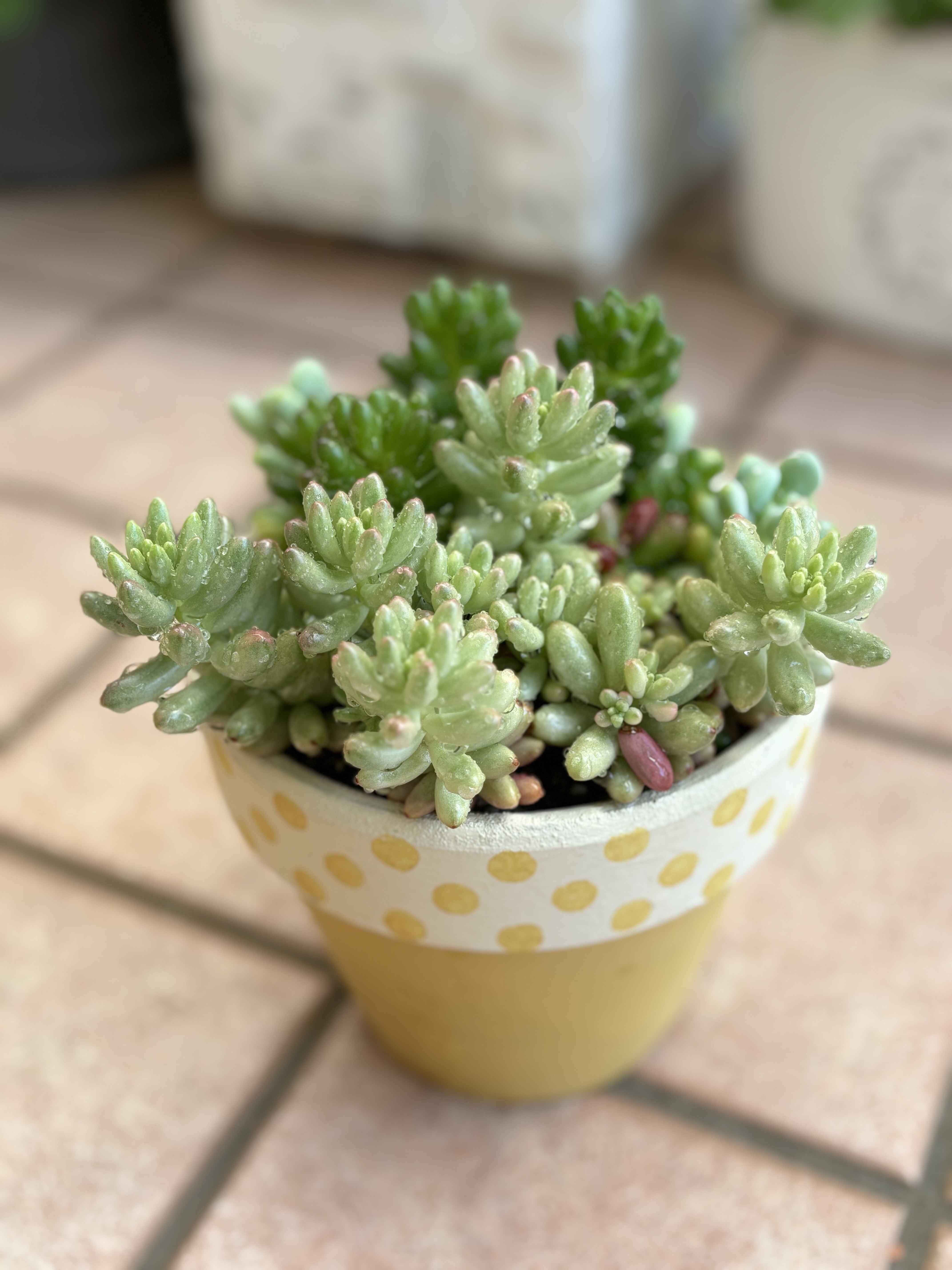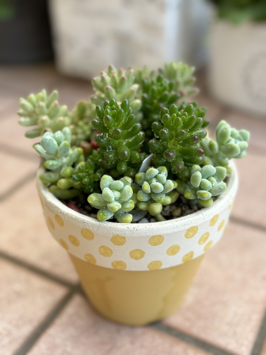 投稿を表示水玉鉢🥰可愛い💖つぶつぶ多肉ちゃんはビアホップかな〰️😆🎶
