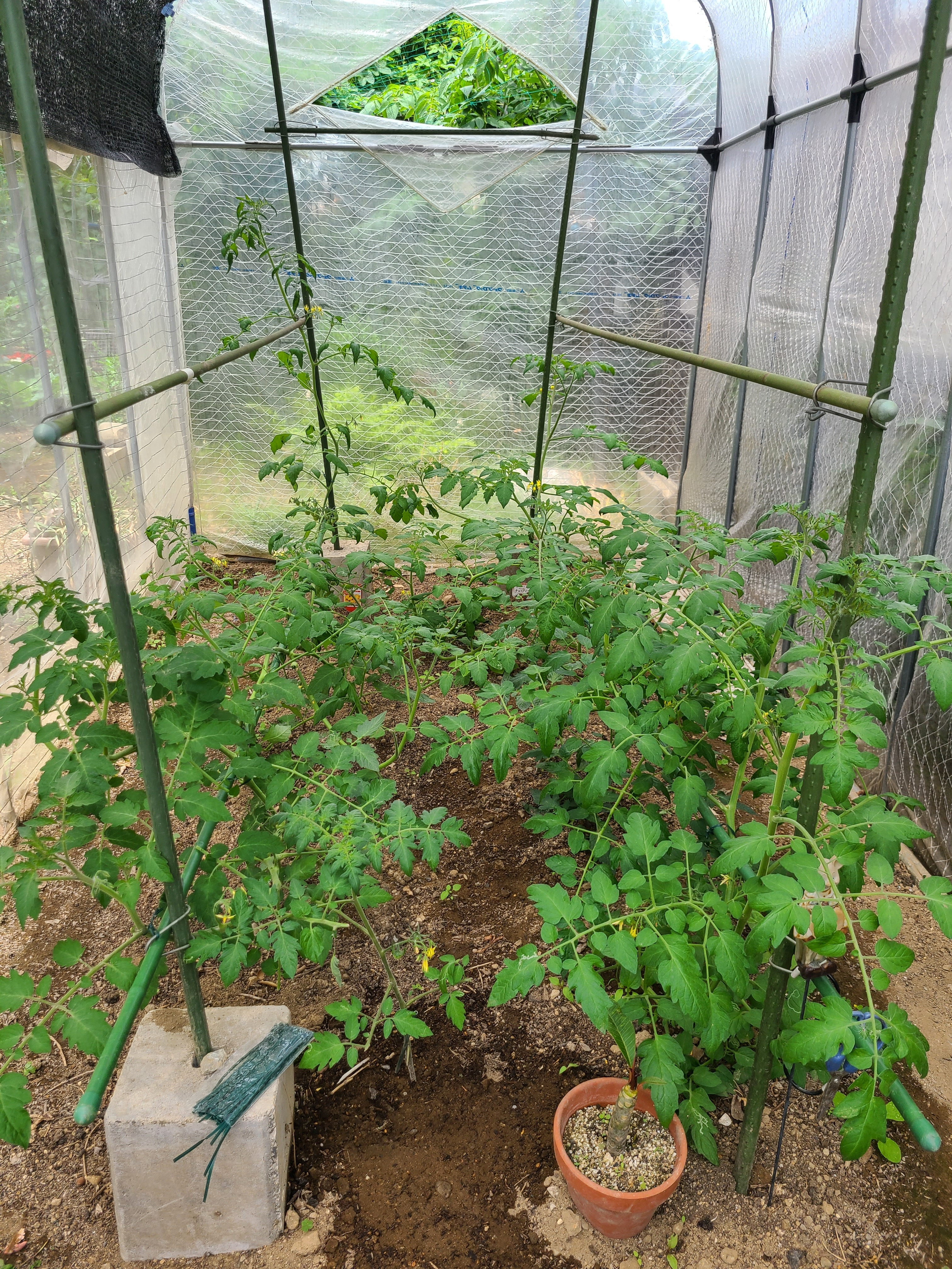 トップ > その他 > グッドアイデア賞 あけ 2023/05/31 23:30 グッドアイデア賞 去年から、ビニールハウスでミニトマトを作ってます。 支柱の横棒3~4段に伸びた枝を這わせていきます。 下の方が収穫済になったら、枝を下げて行き、だいぶ収穫できましたので、再チャレンジです。 いいね 共有する 共有する X LINE リンクをコピー コメントする 0 件の返信 (新着順)