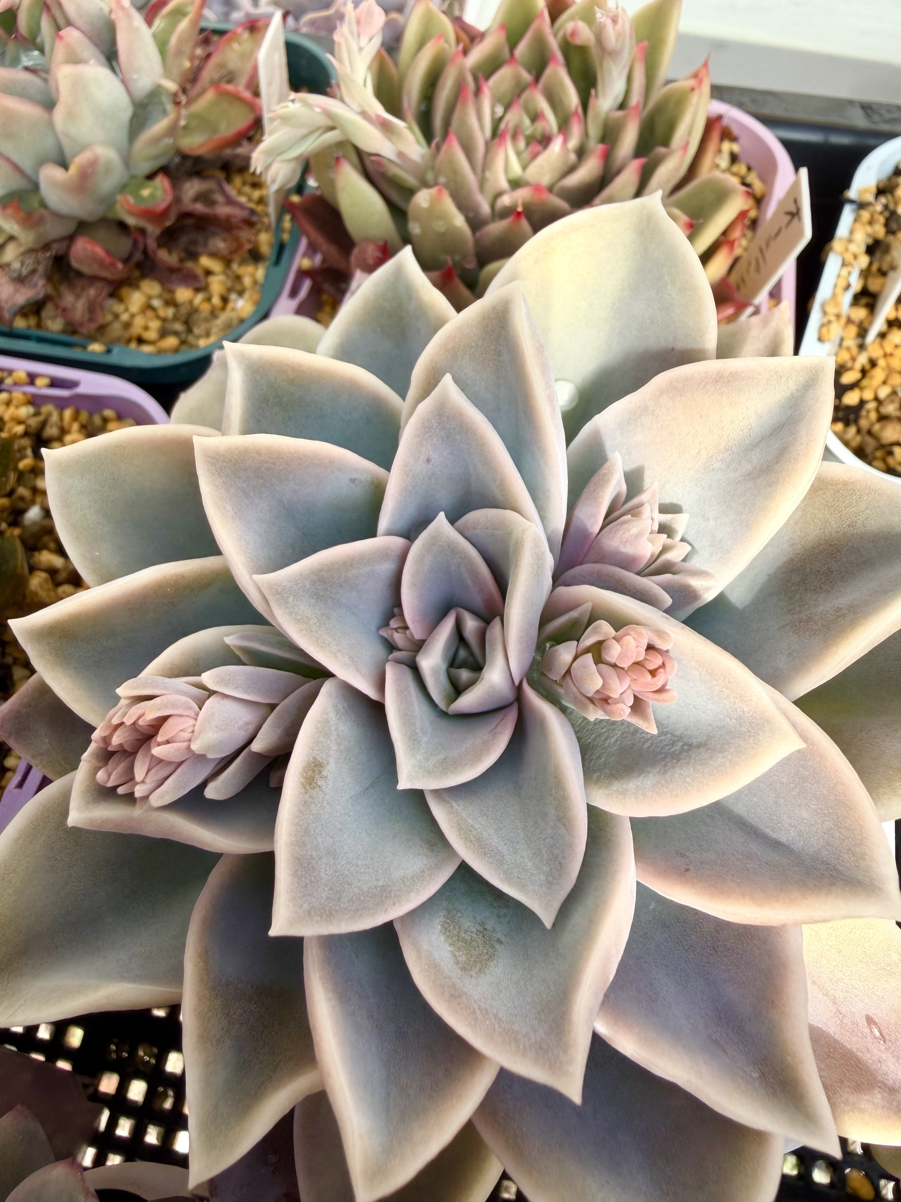トップ > グリーン > 多肉植物・サボテン > 子株が♡ さくら♡ 2026/02/20 20:06 子株が♡ なんだかホワイトパールのカタチが崩れてきたなと思ったら、子株と花芽が出てきていました🤭 いいね 共有する 共有する X LINE リンクをコピー コメントする 3 件の返信 (新着順) ミュートしたユーザーの投稿です。 投稿を表示 ゆりさん 2026/02/20 23:25 かわいいです😍 いいね 返信する ミュートしたユーザーの投稿です。 投稿を表示 non 2026/02/20 22:27 可愛い❤️形を残すために✂️するか…花を愛でてみるか😅どちらも楽しみてすね❤️ いいね 返信する ミュートしたユーザーの投稿です。 投稿を表示 さくら♡ 2026/02/20 22:46 non 株が体力消耗しちゃうので、花芽は可哀想だけど、カット✂️します😂 子株はもう少し大きくなったらカットして挿してあげようかな♡ いいね 返信する ミュートしたユーザーの投稿です。 投稿を表示 mi 2026/02/20 21:38 赤ちゃんもお花も楽しみ😊❤️ いいね 返信する ミュートしたユーザーの投稿です。 投稿を表示 さくら♡ 2026/02/20 22:25 mi 株が体力消耗しちゃうので、花芽は可哀想だけど、カット✂️します😂 いいね 返信する