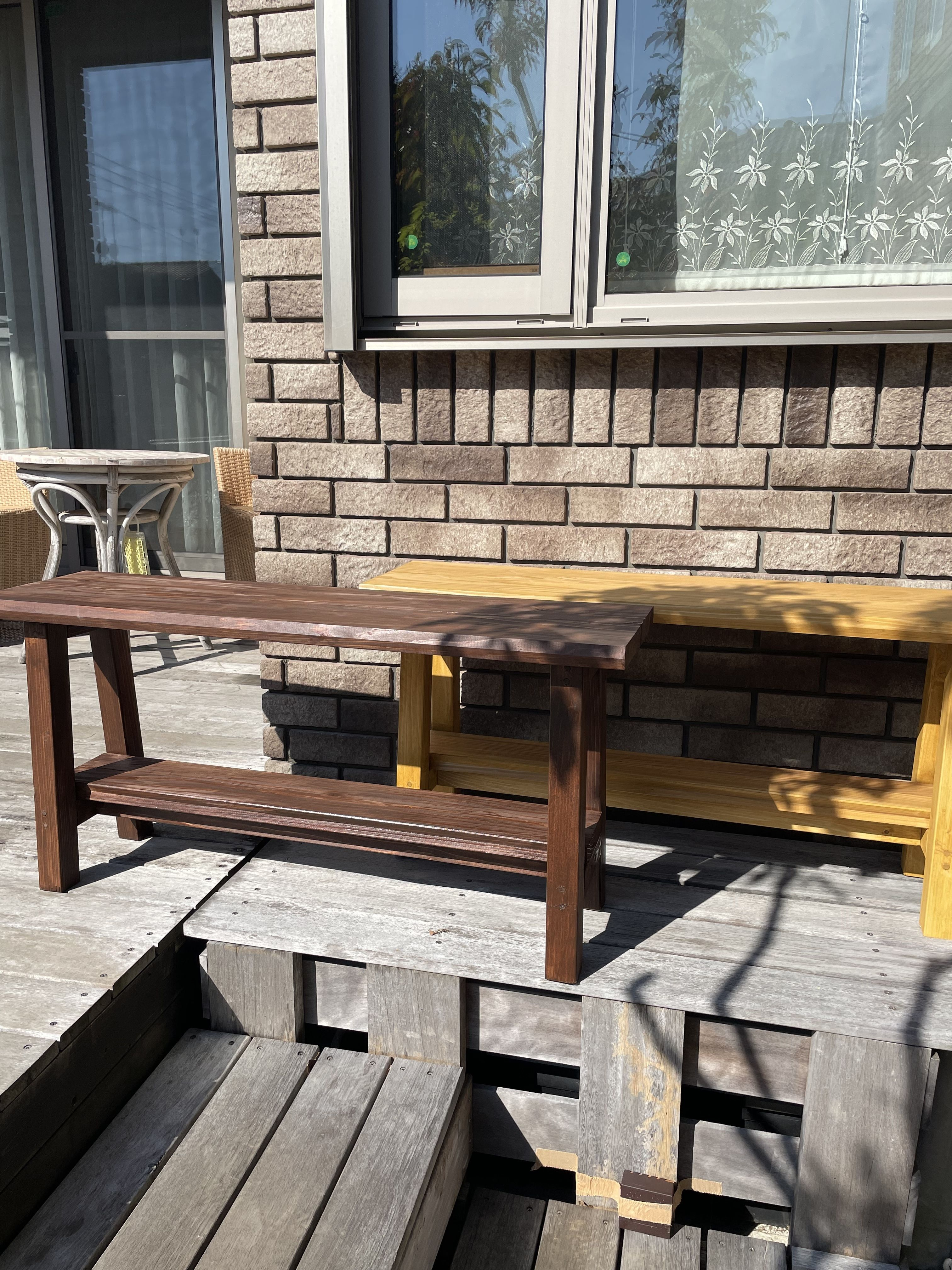 ウッドデッキに、カフェベンチ、いいですね〜🤗