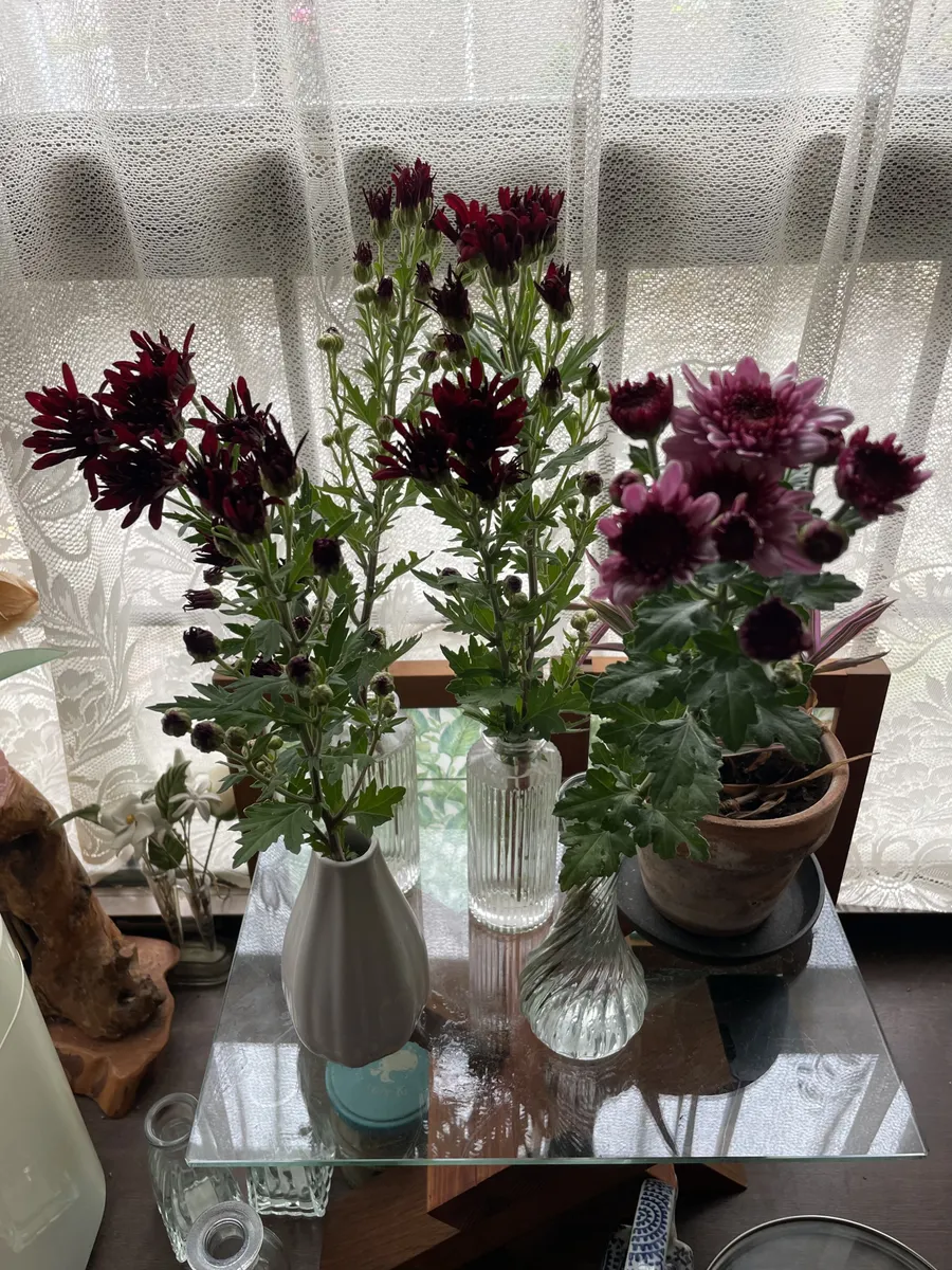 トップ > グリーン > ガーデニング > 秋咲き小菊、嵯峨の孔雀咲いてきた ソラ5551 2025/10/31 10:01 秋咲き小菊、嵯峨の孔雀咲いてきた 今春、地植えした秋咲き小菊の苗、2種目「嵯峨の孔雀」が咲いてきました。 濃い赤紫の様子は、妖艶な印象です。 ↓切り花コーナー、久しぶりに復活です。 右手前は、先日咲いてきたクシェル。 いいね 共有する 共有する X LINE リンクをコピー コメントする 0 件の返信 (新着順)