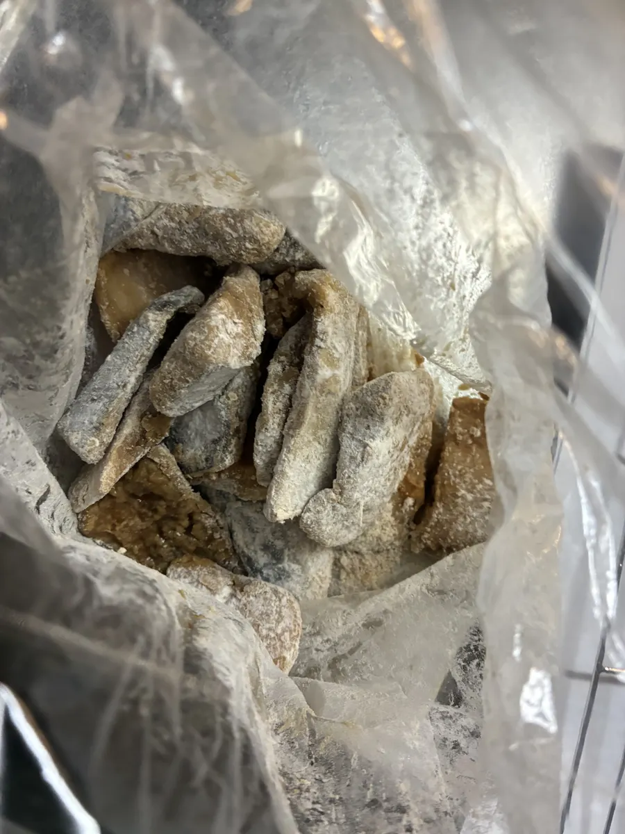 ②キッチンペーパーで水分を拭き取りながら、別のビニール袋に片栗粉とともに入れて、膨らまして振り、粉をまんべんなくまぶす。