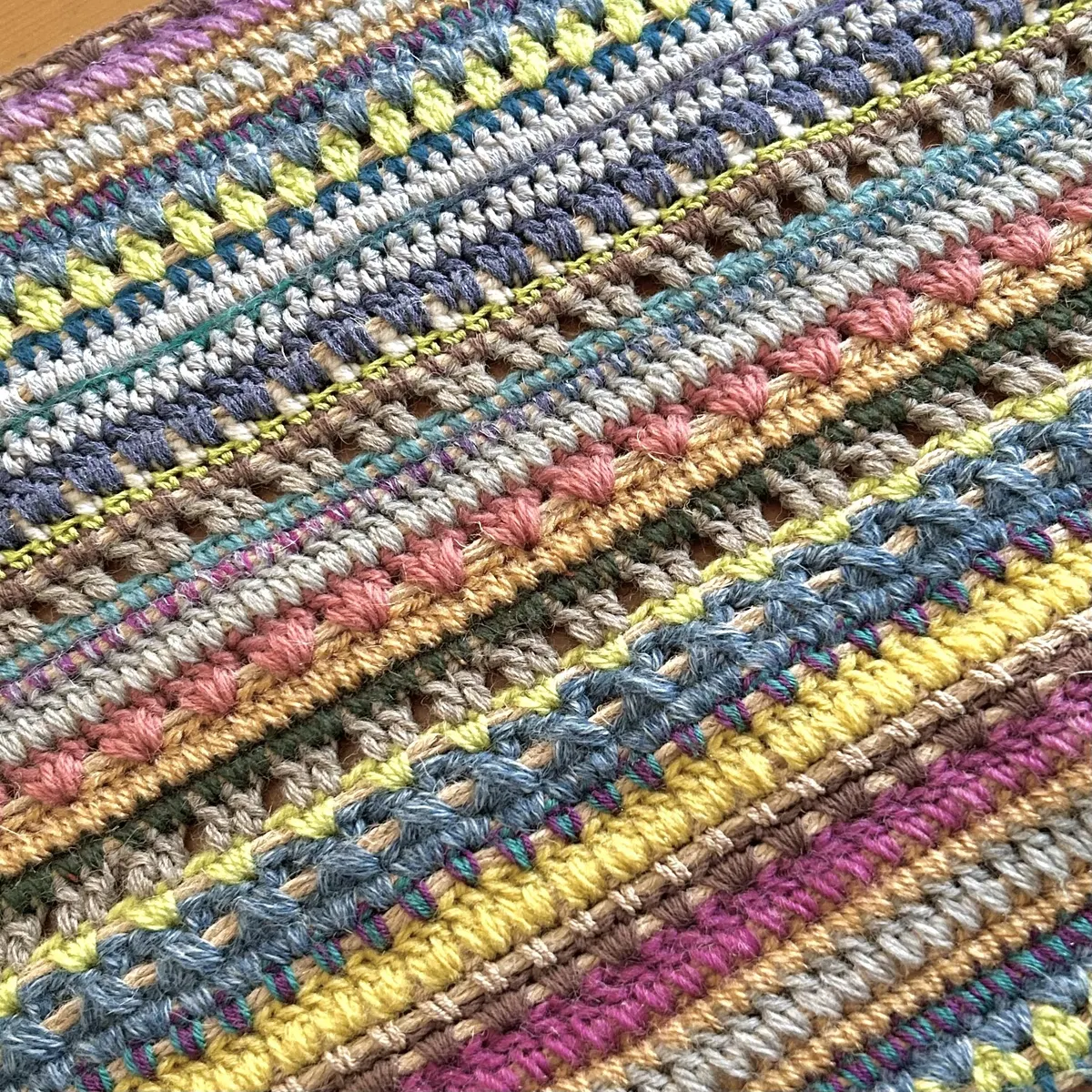 毛糸も編み方もいろいろ織り交ぜてあるのがとっても素敵です😍❤️❤️