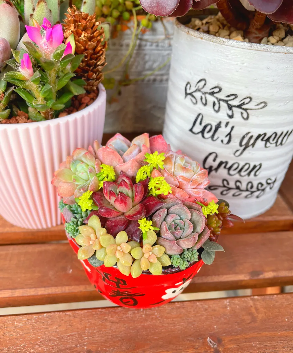 投稿を表示カワイイ〜😍💕赤い器が目を引きますね❗多肉ちゃんも引き立ちますね❗