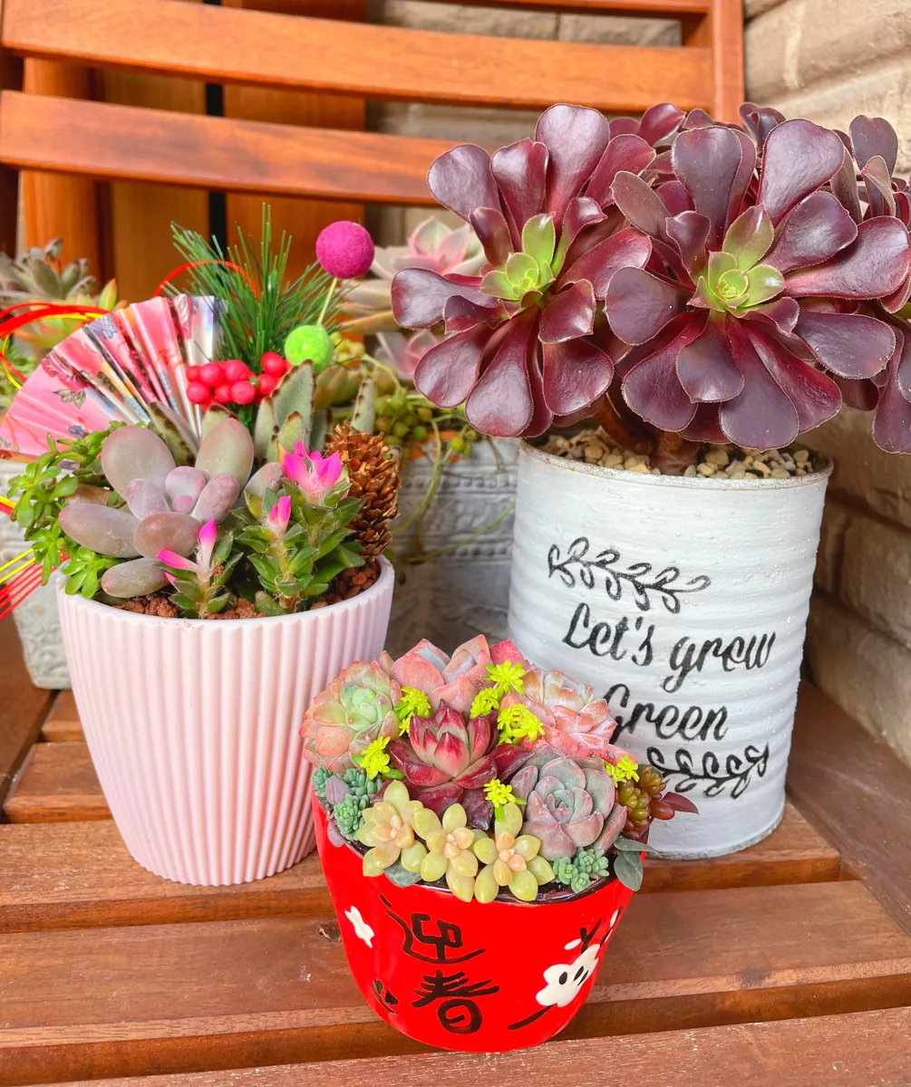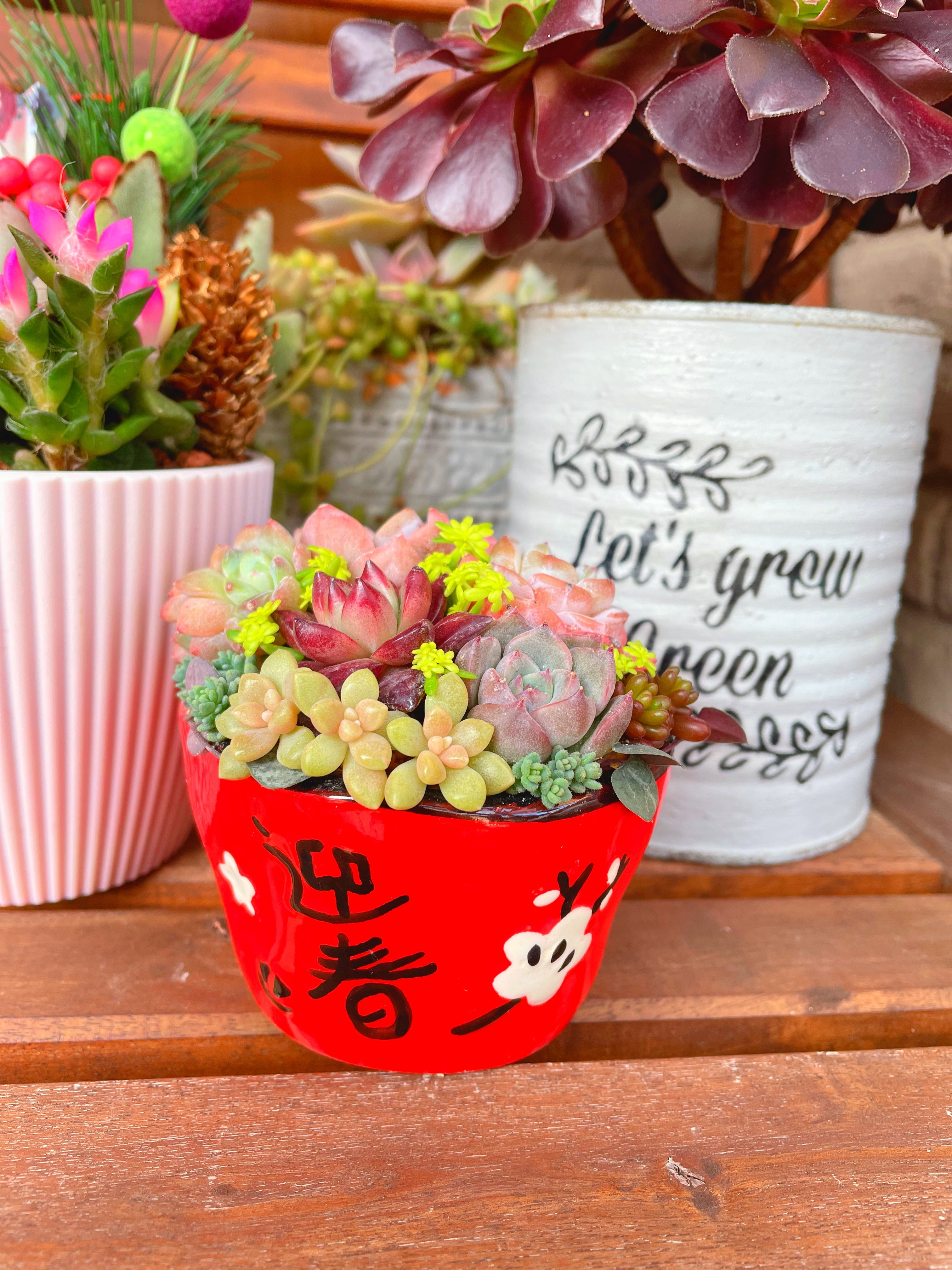 迎春のケーキカップで多肉ちゃんの寄せ植え、可愛らしいですね。😌🌸💕