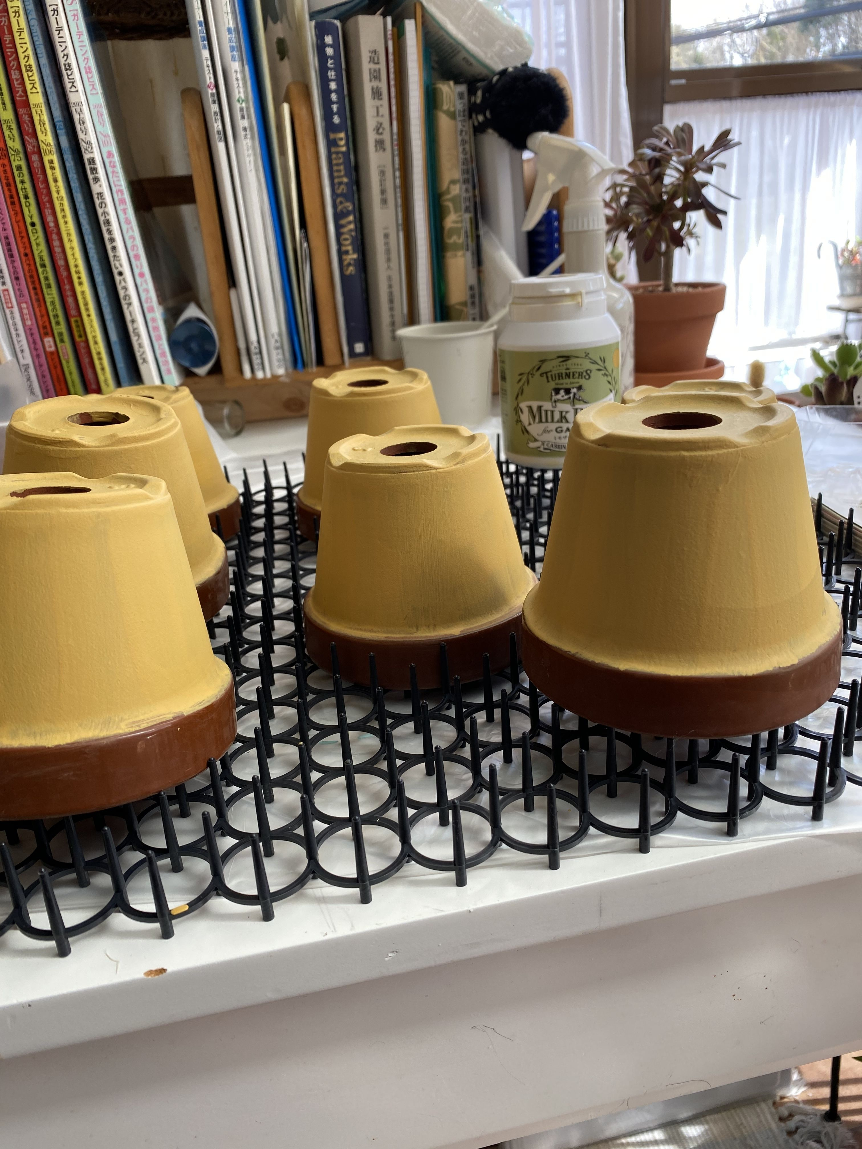 トップ > その他 > 今日は風が強くて寒いので… Toko 2022/04/01 15:03 今日は風が強くて寒いので… 今日は天気がいいのに、風が強くて冷たいので、部屋の中で塗り塗り。 実家の庭の隅に置いてあったもう使わない?、シンプルな3号鉢。それだけではちょっと味気ないなと思い、ターナーの外用ミルクペイントのミモザイエローを塗ってみました。大好きな🫒オリーブグリーンでは、植物の緑の邪魔になるかとこと色にしてみましたが、塗り終えてから、黄色い花は植えられない!😓 多肉用に使うことにします😅 いいね 共有する 共有する X LINE リンクをコピー コメントする 2 件の返信 (新着順) ミュートしたユーザーの投稿です。 投稿を表示 べるん 2022/04/01 17:30 癒しのミモザイエローの鉢が並んで 可愛らしいですね😀 いいね 返信する ミュートしたユーザーの投稿です。 投稿を表示 すゆ 2022/04/01 17:28 えー❣️なんかカステラみたいで可愛い色で私この鉢すきです🤤💖 いいね 返信する