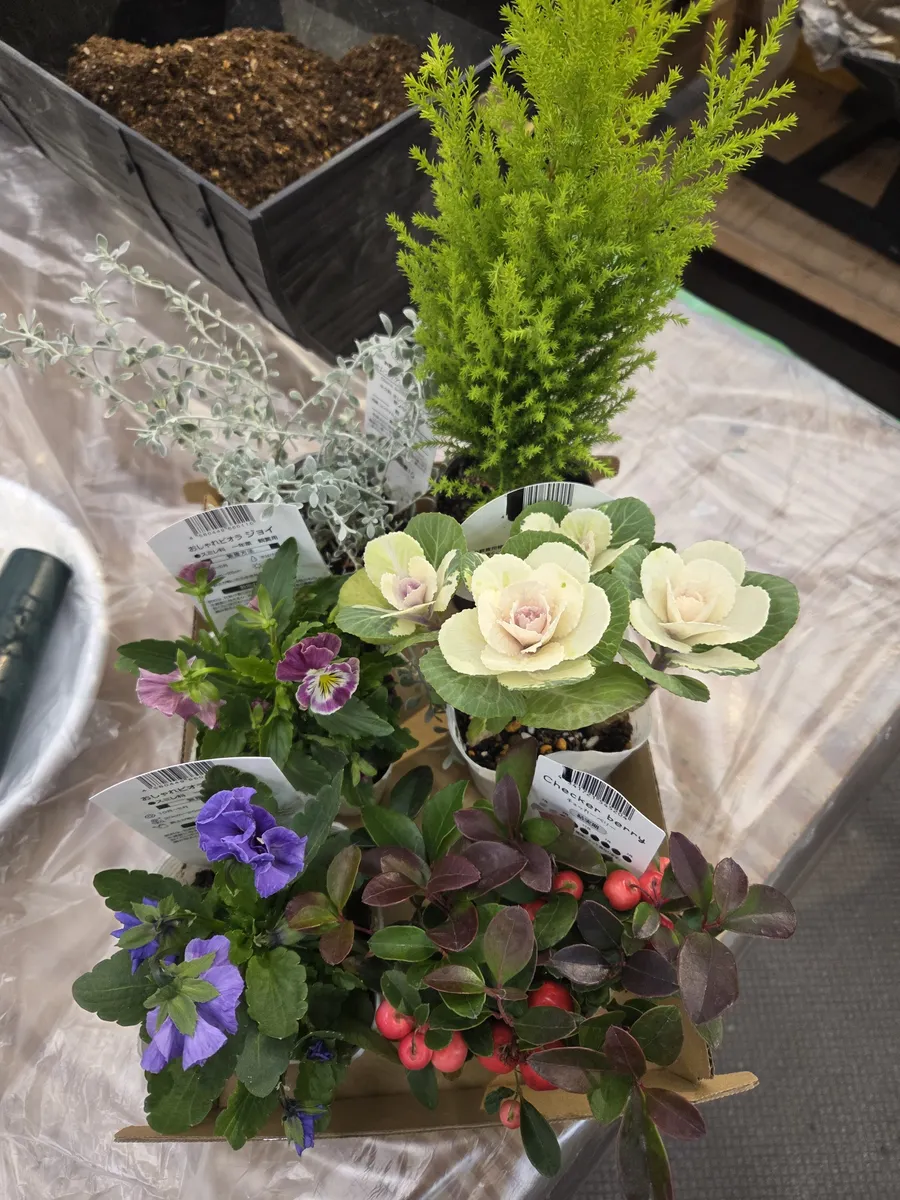 寄せ植えにすると分かりづらいけど、苗がこんなにあるとは驚きです😳