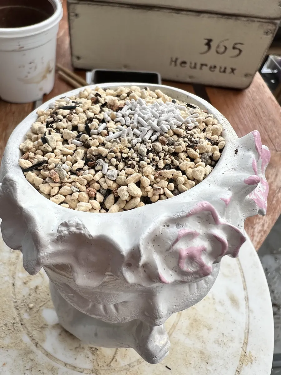 トップ > グリーン レシピ > 多肉植物・サボテン > ぱんだちゃん鉢にチマ寄せ💕 さくら♡ 2025/10/12 07:19 ぱんだちゃん鉢にチマ寄せ💕 ぱんだ ■材料 プレゼント🎁のモルタル鉢 セダム ■作り方 まず、土を入れてオルトランを混ぜ混ぜ。 あとは、ただひたすらチマチマとするだけ笑😆 ■工夫ポイント 先日の展示会の時にぱんだちゃんからプレゼントで頂いた、ボードとモルタル鉢💕 これはチマ寄せに決まり❣️ということで、姫秀麗がピンクに可愛くなるのを想像して作りました🤭 根気よくチマチマ❣️ いいね 共有する 共有する X LINE リンクをコピー コメントする 15 件の返信 (新着順) ミュートしたユーザーの投稿です。 投稿を表示 かふぇ 2025/11/07 17:17 花冠ですね✨ 素敵💞 いいね 返信する ミュートしたユーザーの投稿です。 投稿を表示 さくら♡ 2025/11/07 20:35 かふぇ ね〜🥰 いいね 返信する ミュートしたユーザーの投稿です。 投稿を表示 suimo 2025/10/22 23:10 可愛い✨こんな素敵な器はないけど、姫秀麗はあるから何かに寄せてみようと思いました😊夏に耐えて伸びたのでカットして寄せて、上手くいくかな😃 いいね 返信する ミュートしたユーザーの投稿です。 投稿を表示 さくら♡ 2025/10/22 23:20 suimo 根気があれば大丈夫🙆 夏を耐えた子はいい色になってくれますよ😊 いいね 返信する ミュートしたユーザーの投稿です。 投稿を表示 Milk 2025/10/17 22:40 多肉の冠👑みたいで可愛いですね✨ ピンク色に変化するのが楽しみですね☺️ いいね 返信する ミュートしたユーザーの投稿です。 投稿を表示 さくら♡ 2025/10/17 22:58 Milk でしょでしょ💕🥰 いいね 返信する ミュートしたユーザーの投稿です。 投稿を表示 みずたま☆ 2025/10/17 14:54 これなのね😁✨噂の重いお土産🎁🤣💦 姫秀麗ポロポロなのにチマチマ寄せ植えお疲れ様😆👏めっちゃ可愛いね💕 いいね 返信する ミュートしたユーザーの投稿です。 投稿を表示 さくら♡ 2025/10/17 21:43 みずたま☆ そそ♡ モルタルでめっちゃ上手❣️ アタシもやってみたい☺️ 姫秀麗、ホント ポロポロしまくり笑 いいね 返信する ミュートしたユーザーの投稿です。 投稿を表示 べるん 2025/10/16 13:35 乙女な女の子に、小さな姫秀麗が寄り添って、とても愛らしいですね☺️ 可愛く色付くピンク色💗が楽しみですね🎶 いいね 返信する ミュートしたユーザーの投稿です。 投稿を表示 さくら♡ 2025/10/16 13:59 べるん そうなんです♡ メデゥーサみたいにならないようにしっかり陽に当てとかなくちゃ🤭 いいね 返信する ミュートしたユーザーの投稿です。 投稿を表示 まるちゃん 2025/10/15 22:56 紅葉が楽しみですね*°♡ いいね 返信する ミュートしたユーザーの投稿です。 投稿を表示 さくら♡ 2025/10/16 00:38 まるちゃん とっても💕😍 いいね 返信する ミュートしたユーザーの投稿です。 投稿を表示 ぷぅ 2025/10/16 20:25 まるちゃん 楽しみ^_^ いいね 返信する ミュートしたユーザーの投稿です。 投稿を表示 じゅな 2025/10/14 23:22 姫秀麗がピンクになったら、更に可愛いくなりますね♡ いいね 返信する ミュートしたユーザーの投稿です。 投稿を表示 さくら♡ 2025/10/15 07:23 じゅな そうなんです😊 狙い通りになってくれますように♡ いいね 返信する ミュートしたユーザーの投稿です。 投稿を表示 tanikyu 2025/10/14 23:01 花冠のようなちま寄せ可愛い〜😍❤️ ぱんださんプレゼントの女の子の鉢もラブリーですね🥰 いいね 返信する ミュートしたユーザーの投稿です。 投稿を表示 さくら♡ 2025/10/15 07:25 tanikyu 鉢が可愛いから、どう植えたら良いのかめっちゃ悩みましたよ😅 紅葉でもっと可愛くなってくれますように❣️ いいね 返信する ミュートしたユーザーの投稿です。 投稿を表示 tanikyu 2025/10/15 09:57 さくら♡ 変化する姿を想像しての寄せ植えができるのが多肉の楽しみでもありますね❤️ いいね 返信する ミュートしたユーザーの投稿です。 投稿を表示 さくら♡ 2025/10/15 13:30 tanikyu ね〜❣️🥰 いいね 返信する ミュートしたユーザーの投稿です。 投稿を表示 28`sガーデン 2025/10/14 21:22 土にオルトラン混ぜるんですね。 肥料はなくても良いのでしょうか。 売ってる「多肉植物の土」は肥料入りなのでしょうか。 すみません、わからないことだらけで🙏 いいね 返信する ミュートしたユーザーの投稿です。 投稿を表示 さくら♡ 2025/10/14 21:31 28`sガーデン 最初にオルトランを混ぜておくとゆっくりと浸透して虫がつきにくくなりますよ。 基本、多肉には肥料はいらないですが 私は少しだけゆっくりと長く効くマグァンプを混ぜてあげます。特に親株をカットした後の子株や葉挿しの芽には土に肥料を混ぜてあげると、グンと成長してくれます♪ 売ってる多肉植物の土でしたらそのままで肥料が配合されていると思います😊 あまりあげすぎると徒長しやすかったり、なかなか紅葉しなかったりします。 いいね 返信する ミュートしたユーザーの投稿です。 投稿を表示 28`sガーデン 2025/10/15 09:52 さくら♡