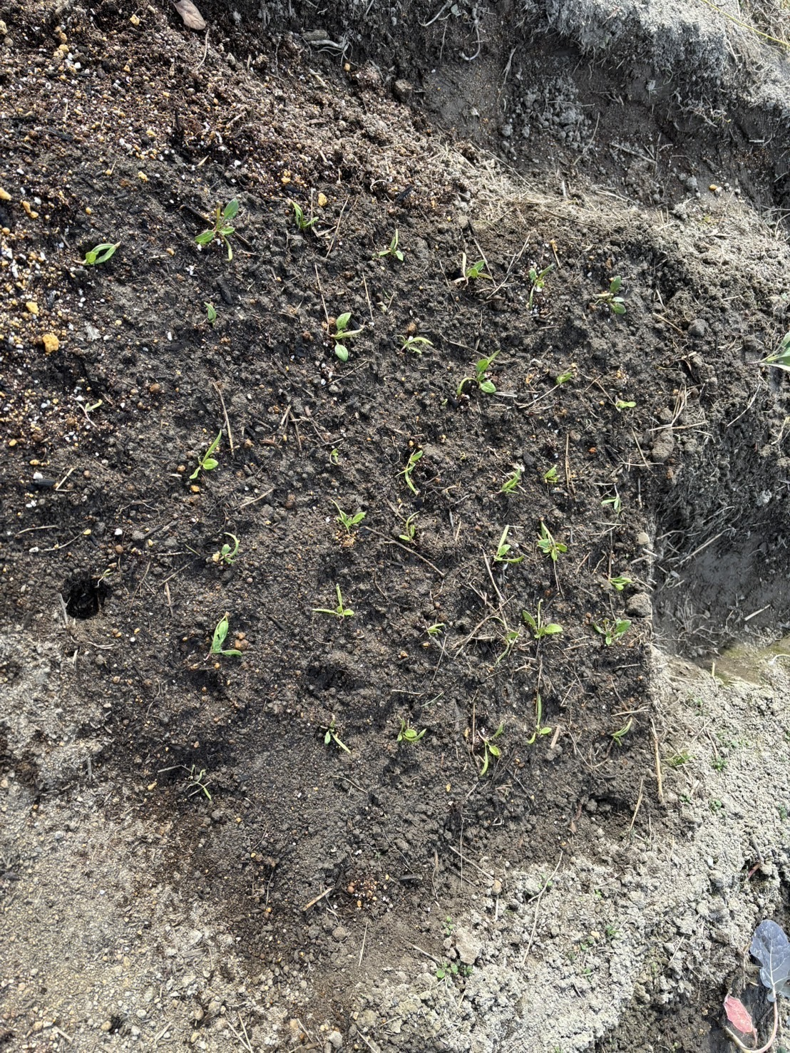 育苗ポットから畑に植え付けたほうれん草が気になります。ほうれん草は寒さに強いとかいうけれど防寒対策ができないでいます。