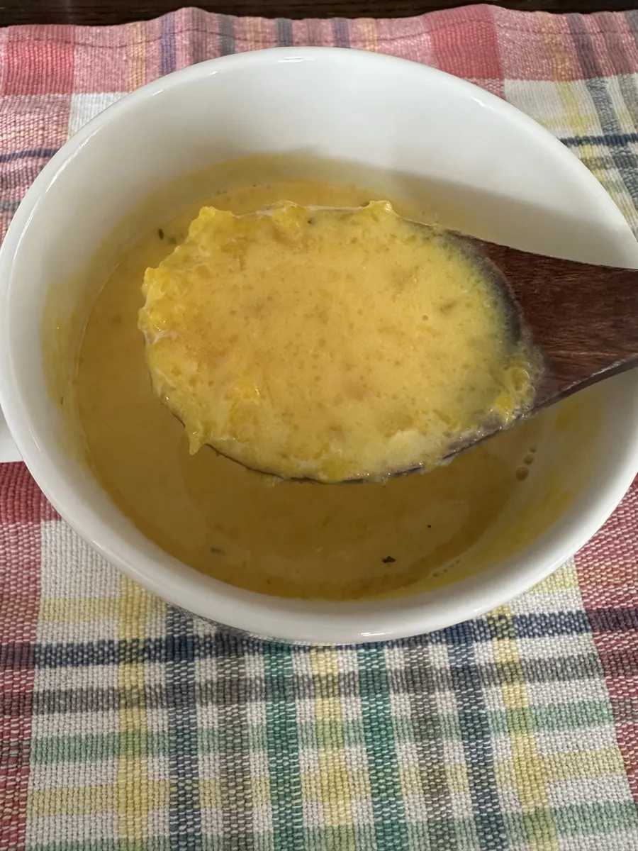 朝から栄養たっぷりのかぼちゃスープいただけたら幸せ💕ミキサーにかけなくても、あえて食感を残して味わうスープ、私も好きです。作ってみたいです😉