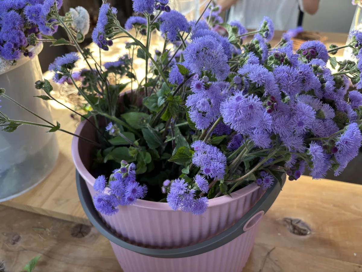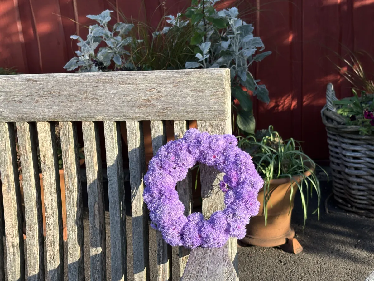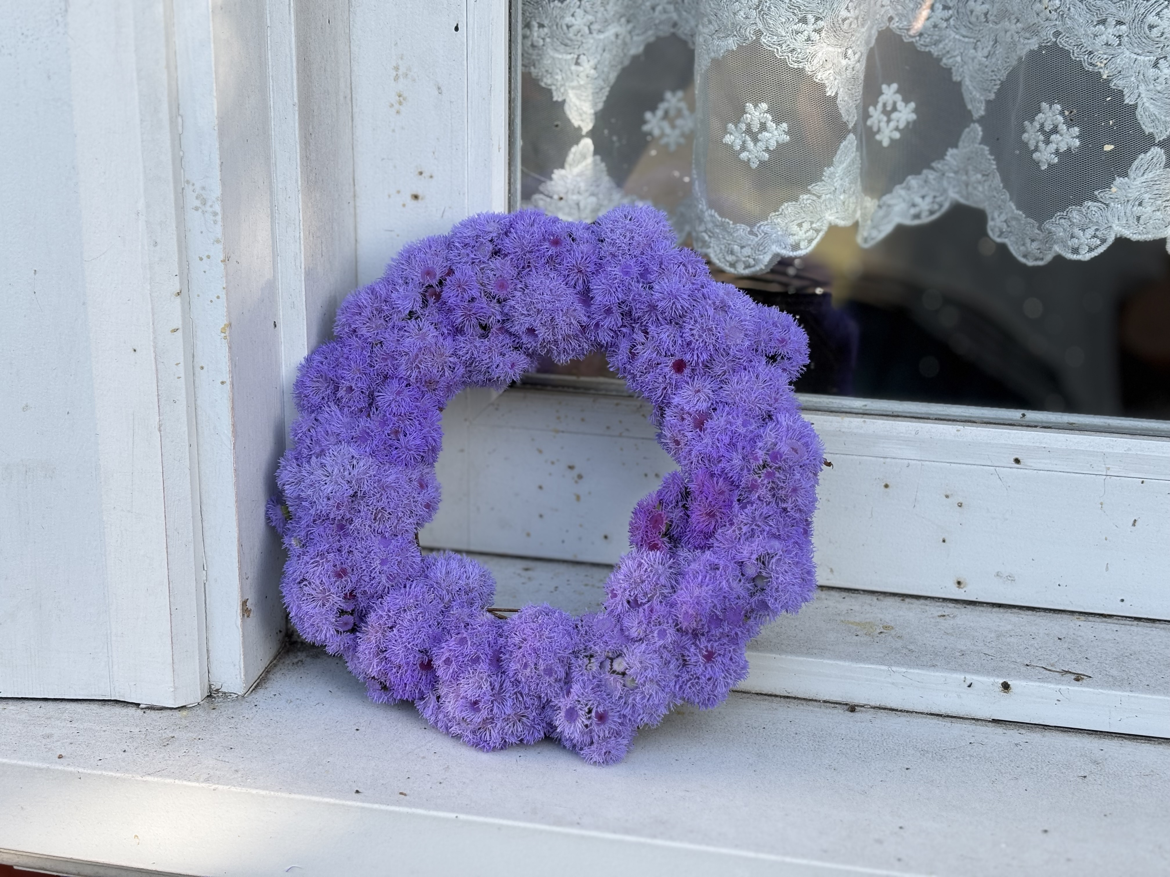投稿を表示アゲラタムのリース、初めましてです💜。