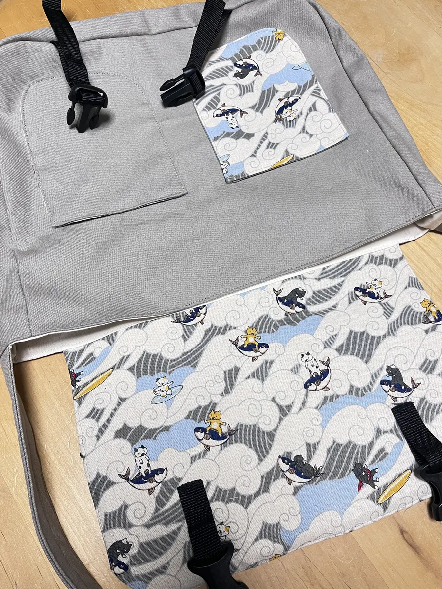 フラップポケットの内側も🐱🐟柄で可愛いらしい💕