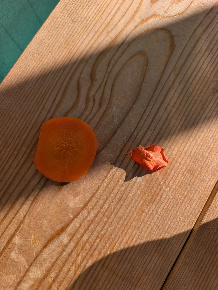 トップ > クッキング > その他 > 人参をスライスして干してみた おひで 2026/02/03 08:56 人参をスライスして干してみた 静岡県は乾燥の日々が続いております。 そんな中で、先日人参を 保存できるようにスライスして干してみました。 1週間くらい前にもやっていて、 それとの比較がこんな感じ。 結構縮まるものですね。 完全にできたらおみそ汁のネタにでもしましょうかね。 そのまま戻したらお出汁も出そうだし。 ちなみに皮付きで今回はスライスして干してます。 いいね 共有する 共有する X LINE リンクをコピー コメントする 0 件の返信 (新着順)