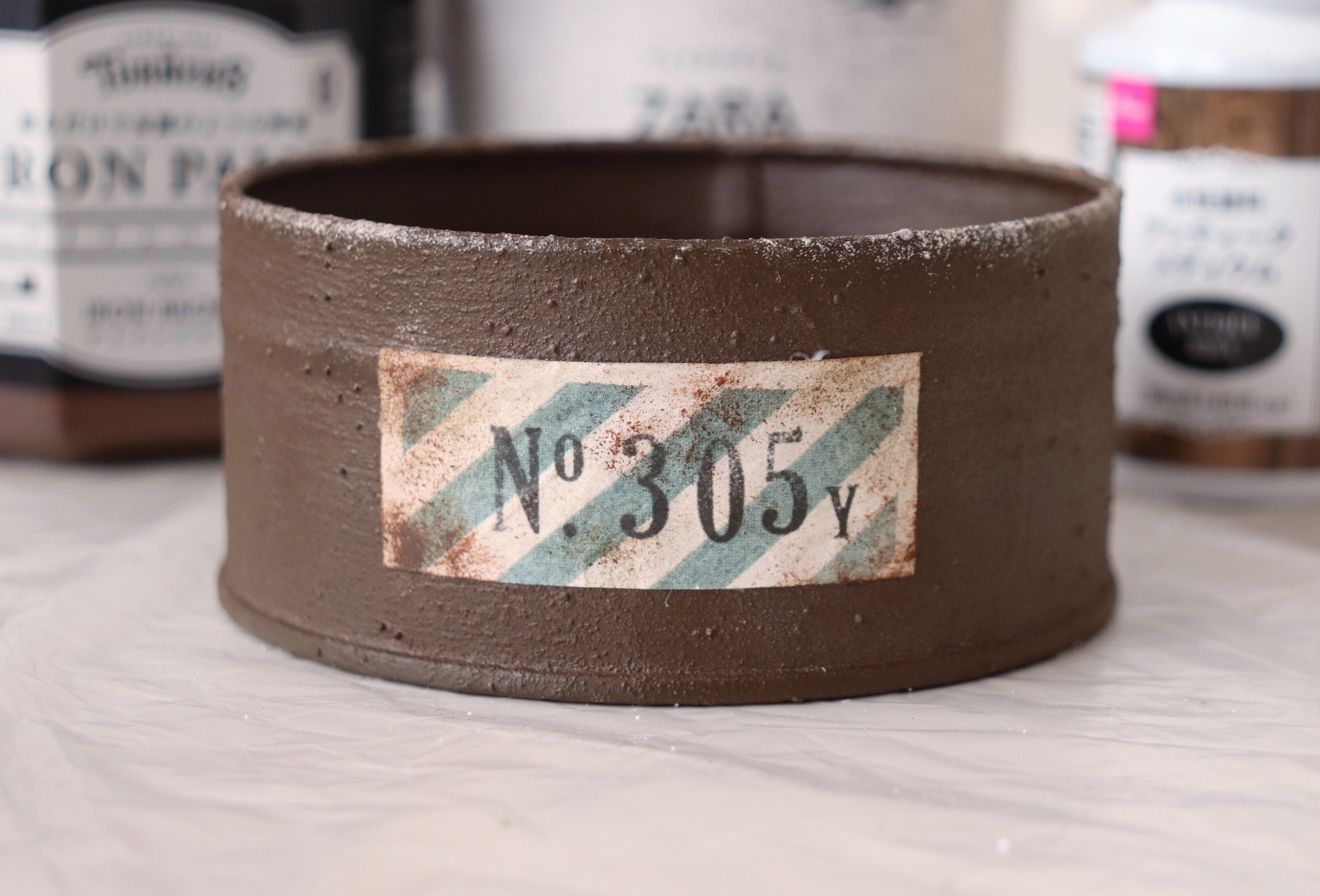 ラベルの周りを線香などでチリチリ焼いて、そこを汚すともっとアンティーク感出るのでオススメです♡