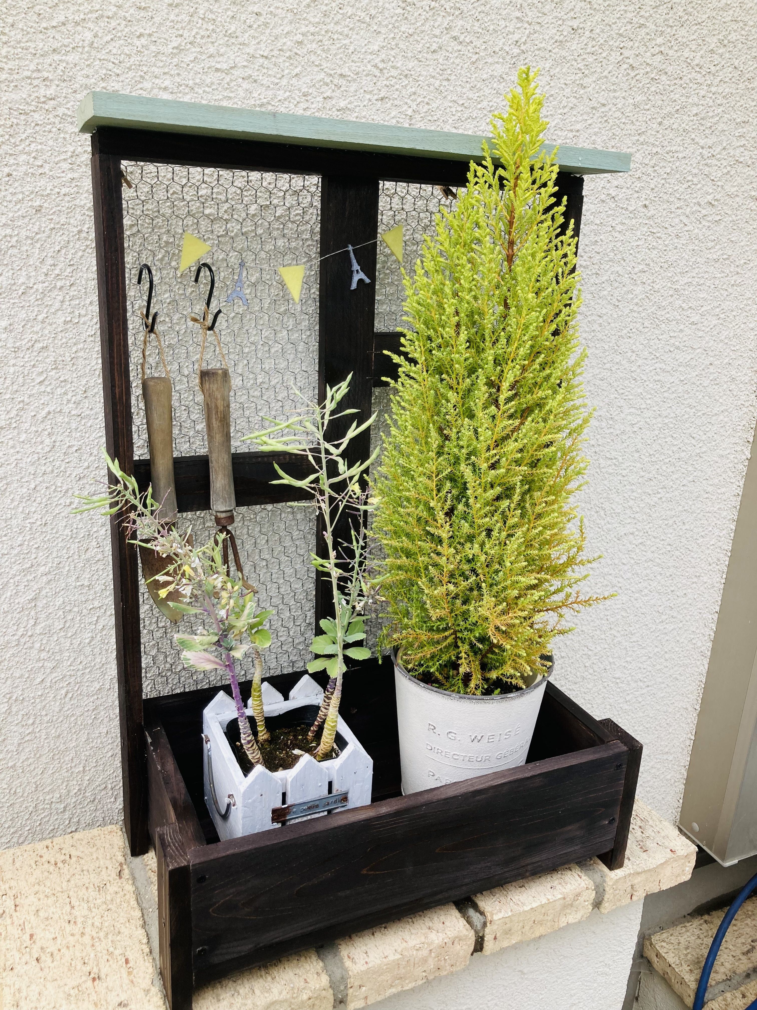 スコップとか色々掛けられて飾り付けするのも楽しくなりますね🎵