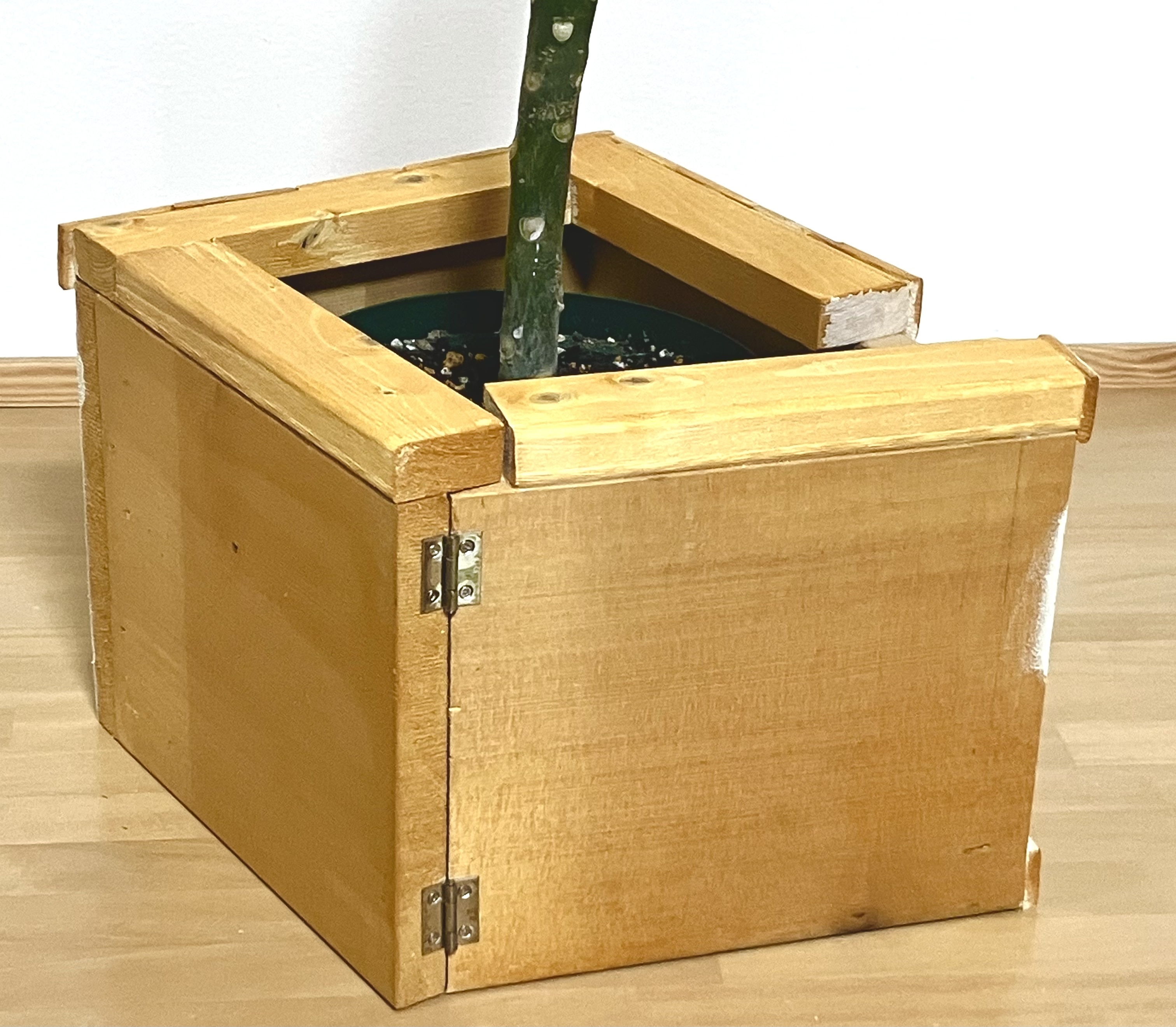 ポイントは、裏側に蝶番をつけて一面が開くようにしたので、水やりや場所移動などが簡単にできることです👍✨