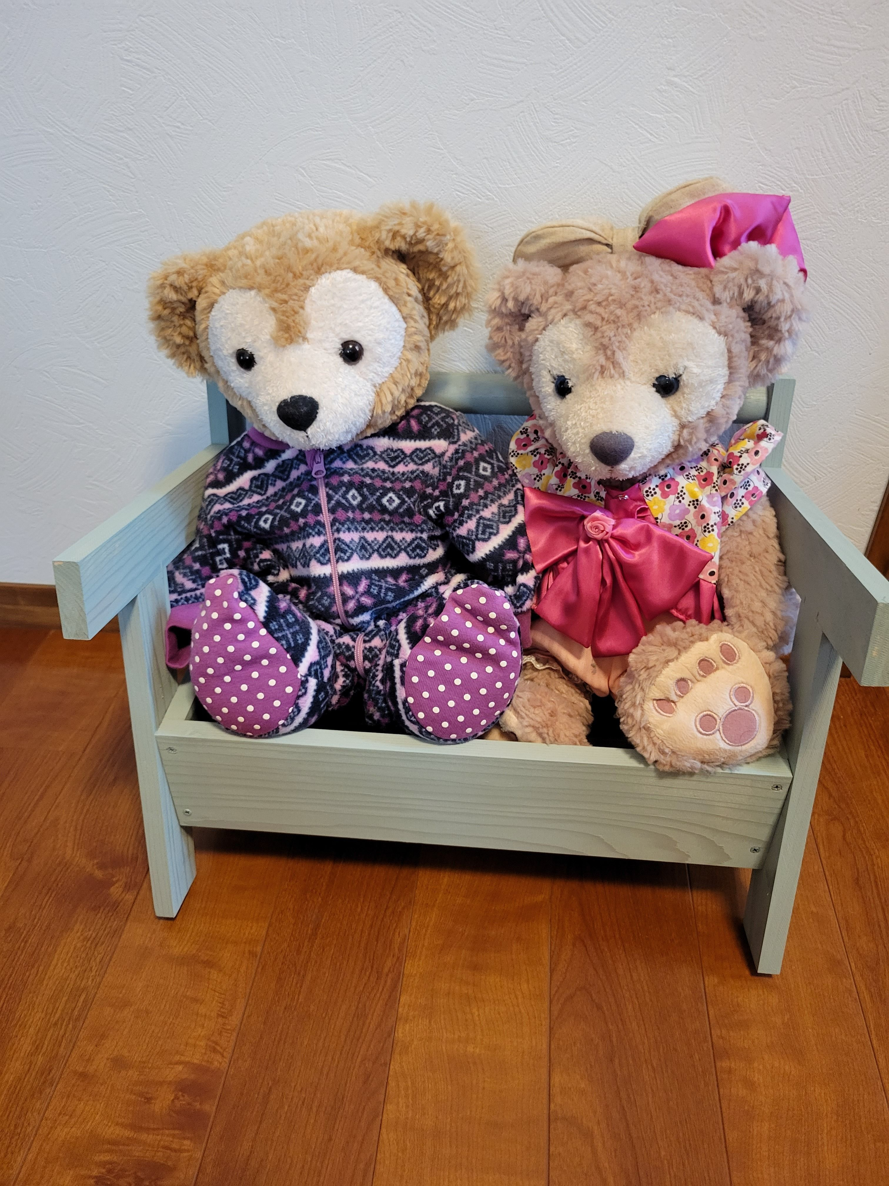 🌊🏰の🐻さん可愛い〜😀洋服は、オリジナル?私も、🏰🐭で買ったTシャツを🐻さんの服にリメークして貰い着せてます😁