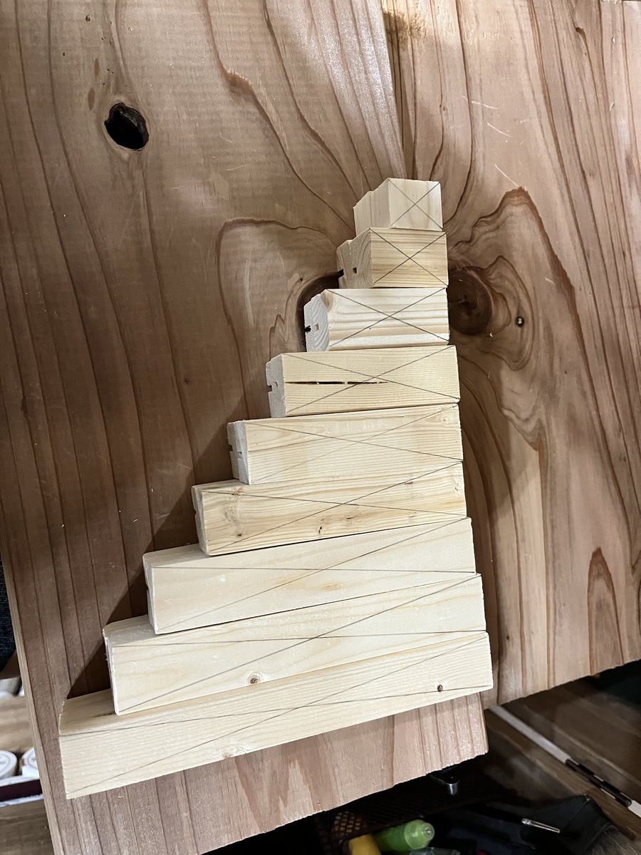 最近ちょくちょく皆さんが作られている端材ツリー。